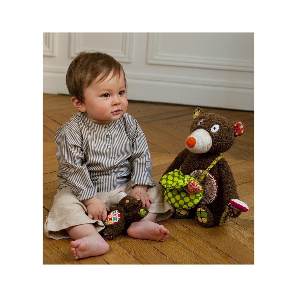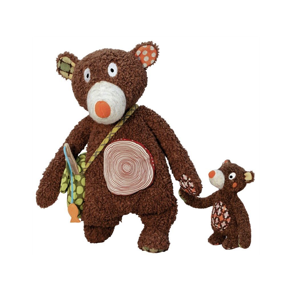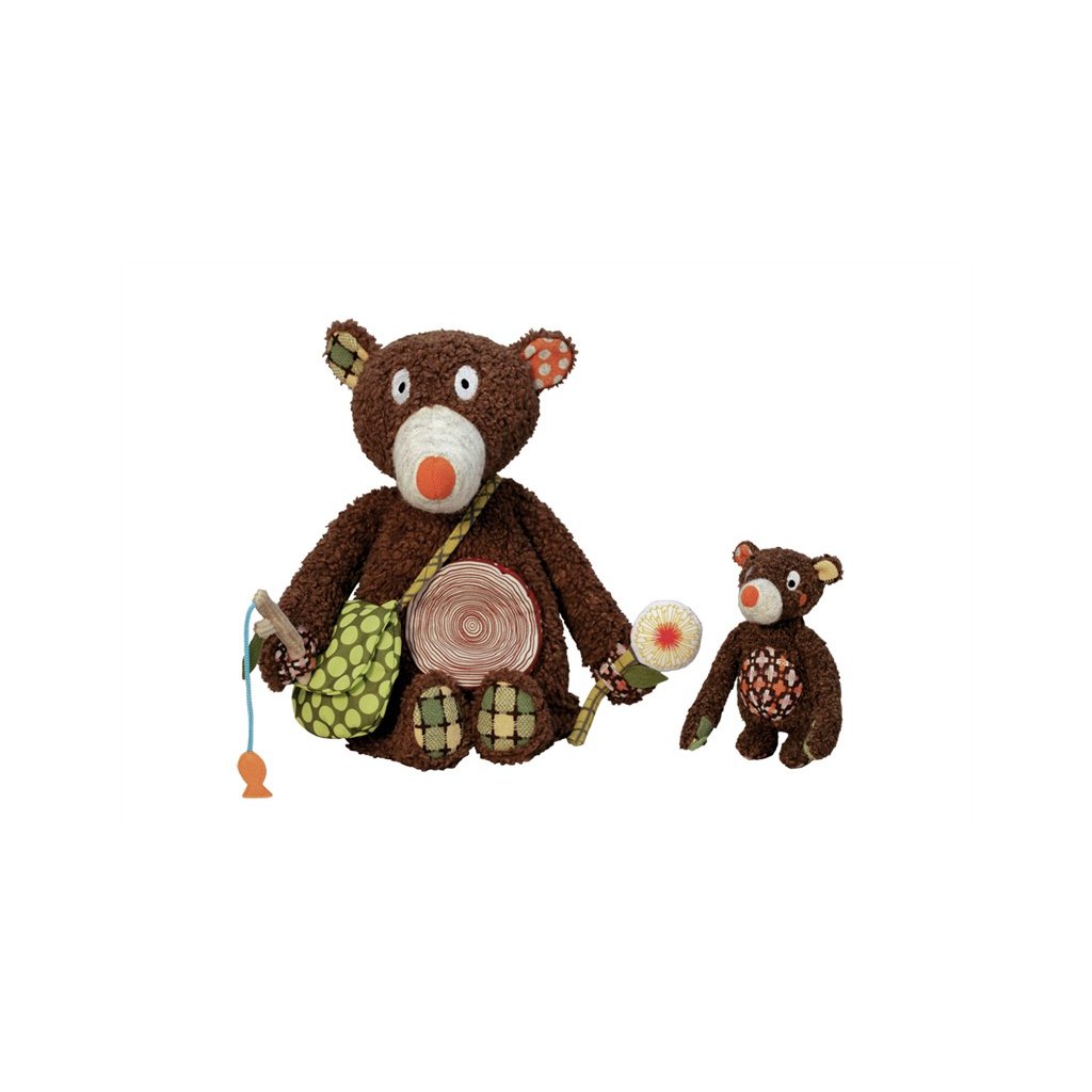 Překrásní medvídci táta a syn francouzské značky Ebulobo nadchnou vás i vaše děti. Táta a syn tvoří nerozlučnou dvojici, která spolu tráví volné chvíle na rybách nebo na procházkách po lese. Malý medvídek se může táty chytit kolem krku a když je hodně unavený, může se schovat do kapsy na tátově bříšku. Táta je velký silný medvěd a je vybaven prutem na ryby, taškou, vibrující rybičkou a šustící květinou.