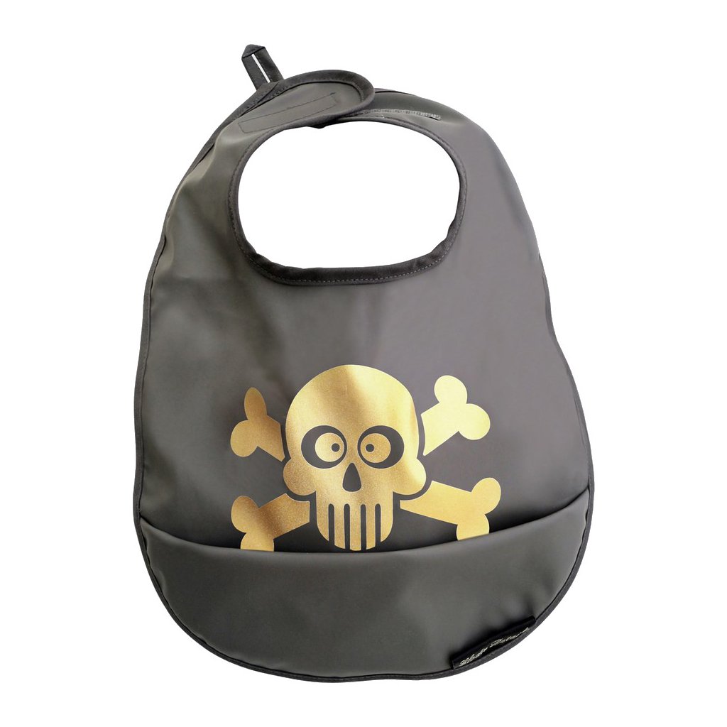 Praktický bryndák na suchý zip je vyroben z pogumovaného omyvatelného materiálu. Kapsa v dolní části zachytí drobky, kapky pití či zbytky jídla.