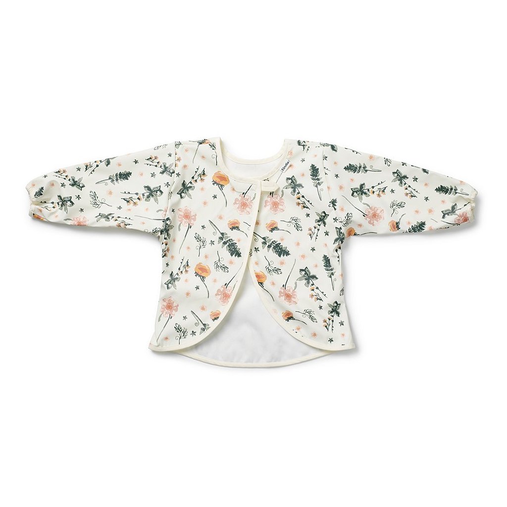 Tento praktický bryndák s dlouhými rukávy uchová vaše děťátko v čistotě během krmení, ale také ve chvílích tvoření, například při kreslení vodovkami. V přední části je vybaven kapsou, která zachytí stékající nečistoty nebo drobky. Bryndák se snadno obléká a ještě snáze udržuje. Je vyroben ze 100% polyesteru s PU vrstvou a lze ho prát na 40 °C. Tento bryndák má krémovou barvu s motivem květin. Velikost vhodná pro děti od 1-3 let.