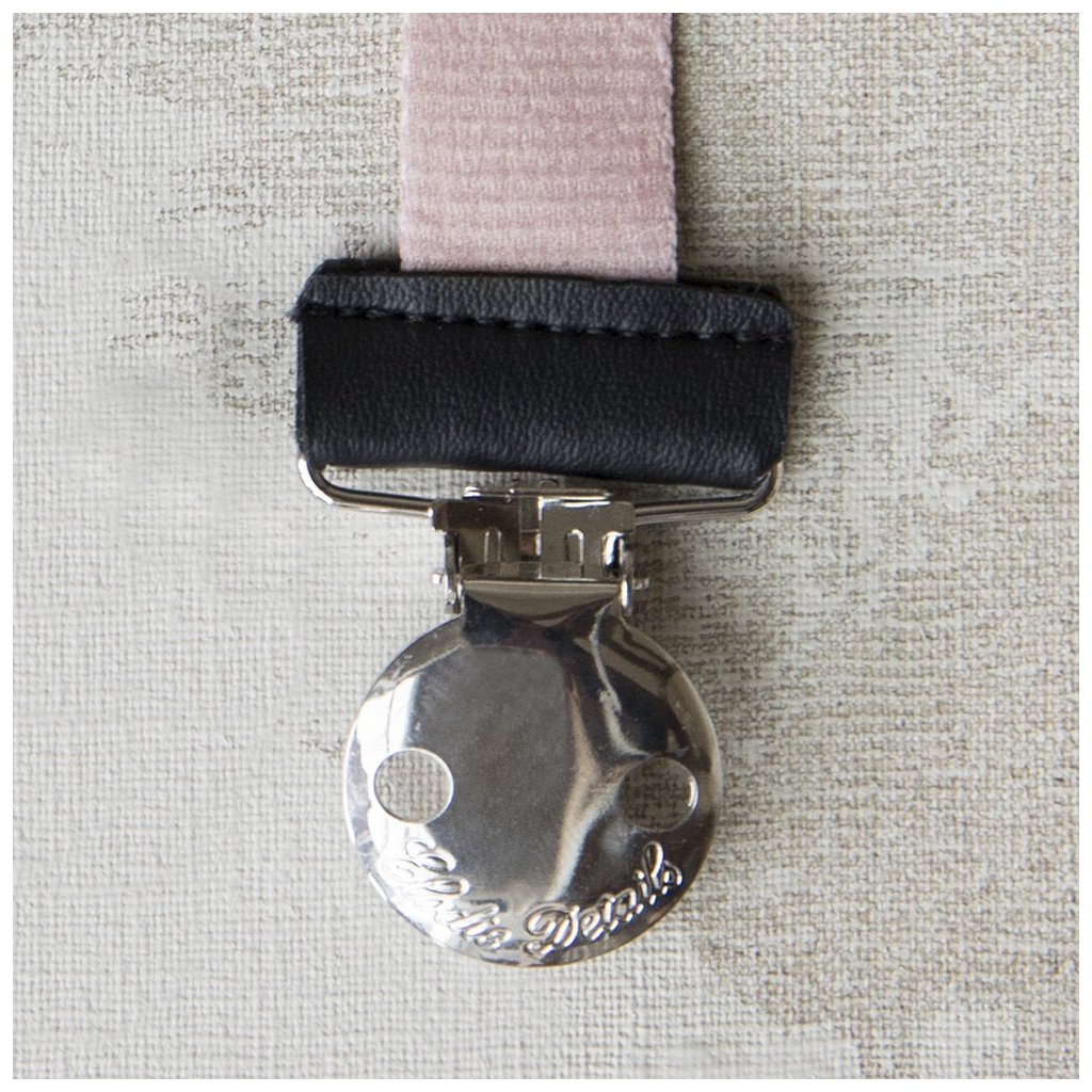 Klip umožňuje přichycení dudlíku k oblečení, kočárku apod. Pomáhá zabraňovat zrátě či znečištění dudlíku a zároveň je i zajímavým designovým doplňkem. Silikonový kroužek pasuje na většinu dudlíků. Odolný klip je kovový bez obsahu niklu. Klip vyhovuje evropské bezpečnostní normě EN-12586. Klip má starorůžovou barvu a aplikaci mašličky.