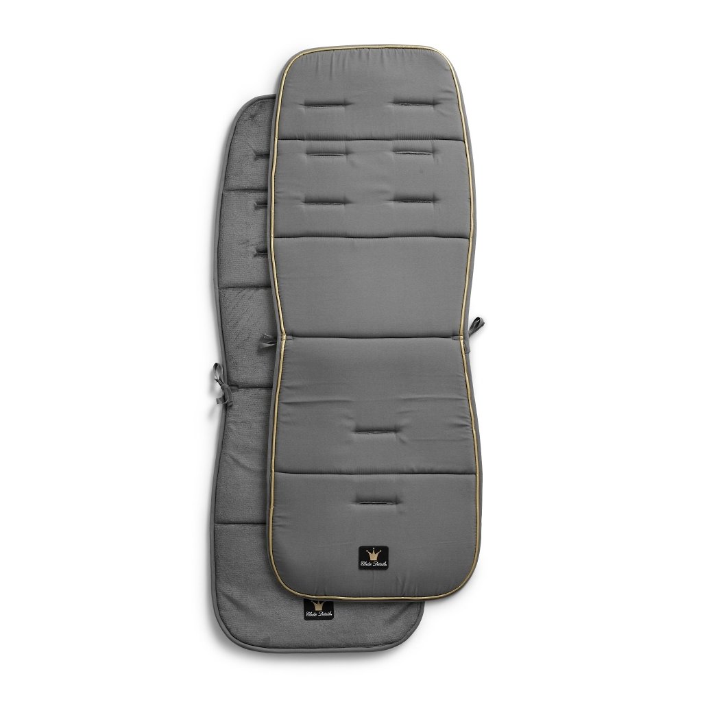 Podložka oživí vzhled vašeho kočárku a díky extra výplní poskytne dítěti větší komfort. Podložka pasuje na většinu kočárků. Má otvory na 5bodové bezpečnostní pásy a lze ji používat z obou stran. Přední část se snadno čistí, druhá je vyrobena z příjemného fleecu. Její rozměry jsou 85 x 32 cm. Tato podložka má šedou barvu se zlatým pruhem.
