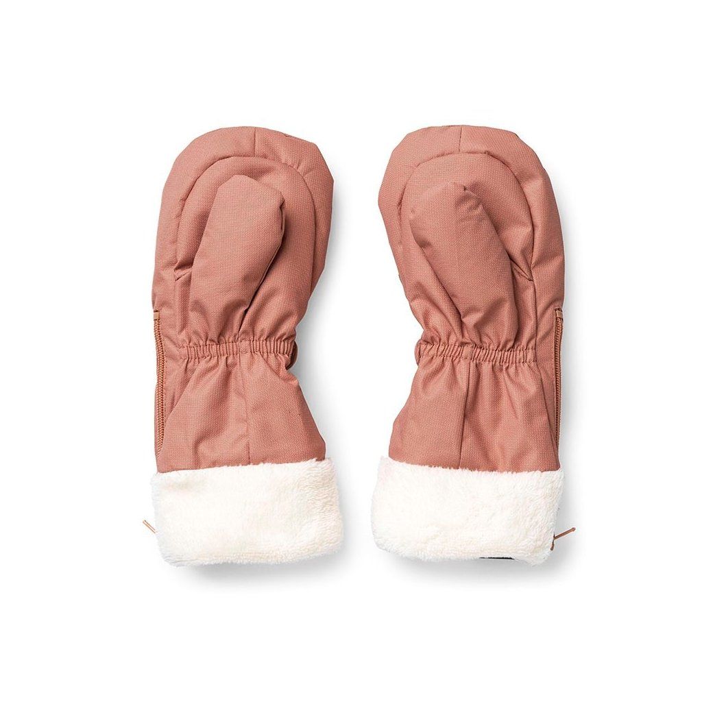 Rukavice zahřejí zmrzlé prstíky, jsou odolné proti vodě a dešti. Ve velikosti 0-12 měsíců jsou bez palečků a opatřeny šňůrkou, která je spojuje a zabraňuje jejich ztrátě. Ve velikostech 12-36 měsíců mají zip až k palci, který umožňuje jejich lepší nasazení. Kolem zápěstí jsou opatřeny suchým zipem, aby rukavice dobře držely a nesklouzávaly.