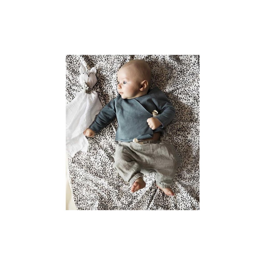 Velmi kvalitní, dvojitá deka je vyrobena z exkluzivního materiálu. Sametový povrch je příjemný na dotek a zajistí tepelný komfort. Deka má také výborné absorpční schopnosti. Využijete ji do kočárku, autosedačky, postýlky, prostě všude tam, kde bude potřeba pro zahřátí. Můžete ji prát znovu a znovu, a přesto si zachová svoji vysokou kvalitu. Deka má bílou barvu s černým a šedým zvířecím motivem.