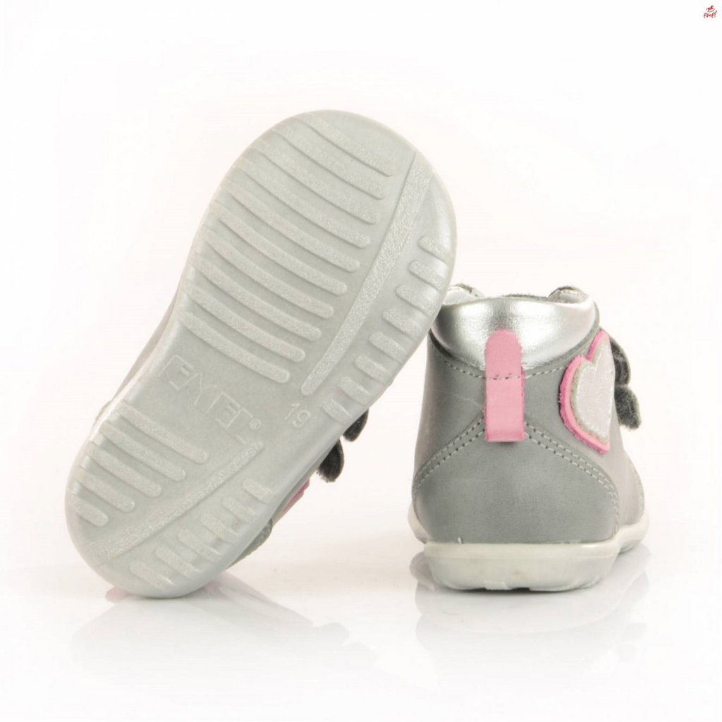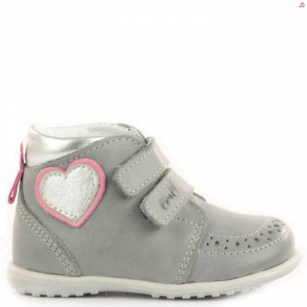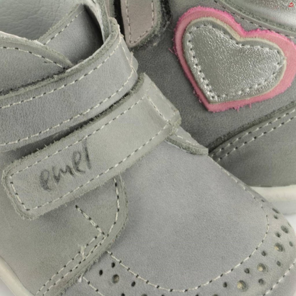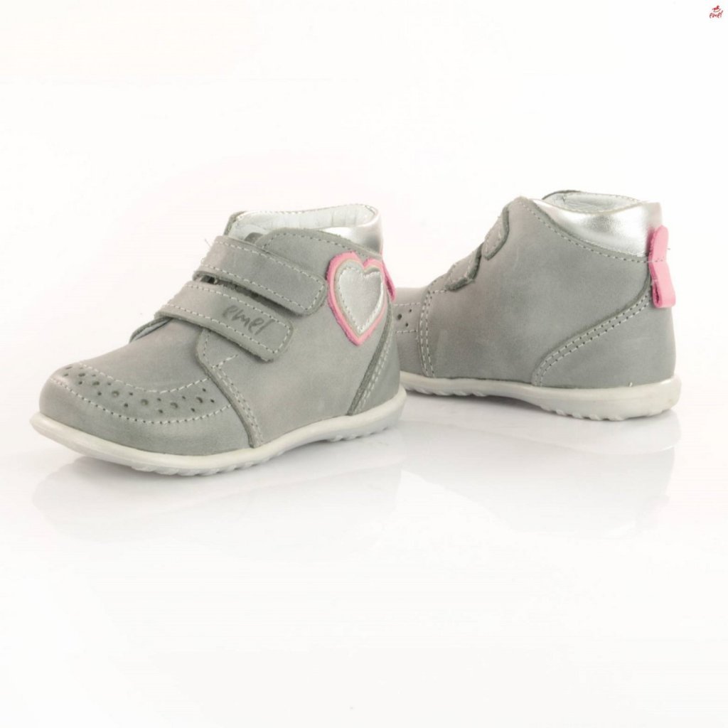 Botičky Emel jsou ideální obuví pro děti, které právě začínají chodit. Tyto první boty jsou charakteristické pro svoji špičkovou kvalitu, ruční zpracování a použitou nejjemnější kůži. Podrážka je velmi lehká a pružná a díky široké špičce je zajištěn volný pohyb prstů, který je při prvních krůčcích velmi důležitý. Botičky jsou navržené tak, aby dětské nožce zajistily maximální komfort a zároveň podpořily její zdravý rozvoj a s ním související správný vývoj chůze. Všechny tyto vlastnosti dělají z bot Emel uznávanou značku jak mezi rodiči, tak mezi dětskými ortopedy. Barva je šedá s růžovými a stříbrnými prvky.