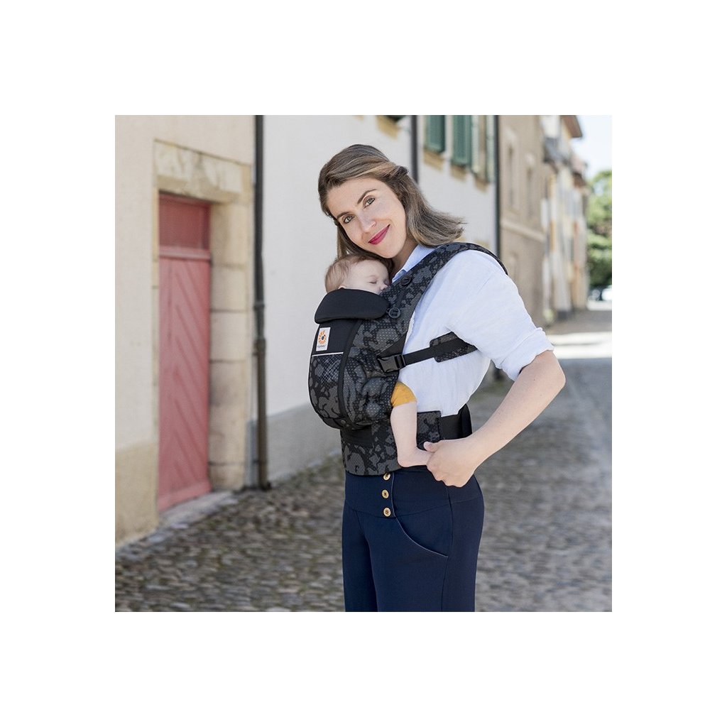 - bederní opěrka a široký bederní pás (obvod bederního pásu - rozsah 66 - 140 cm) umožňují nosit dítě pohodlně vysokým i malým rodičům a je tak blízko, že ho můžete políbit. Dvojitý seřizovač pro snadné utahování