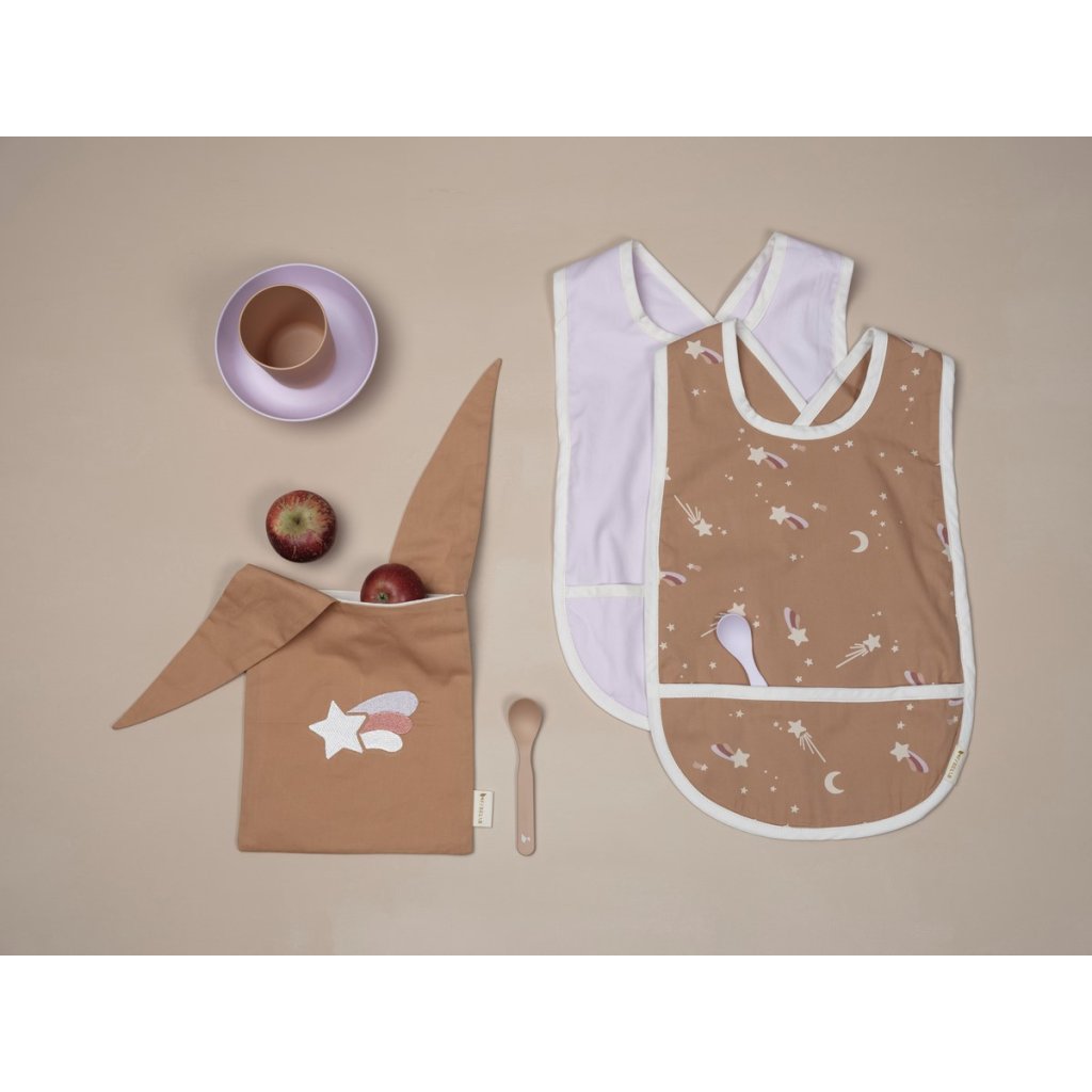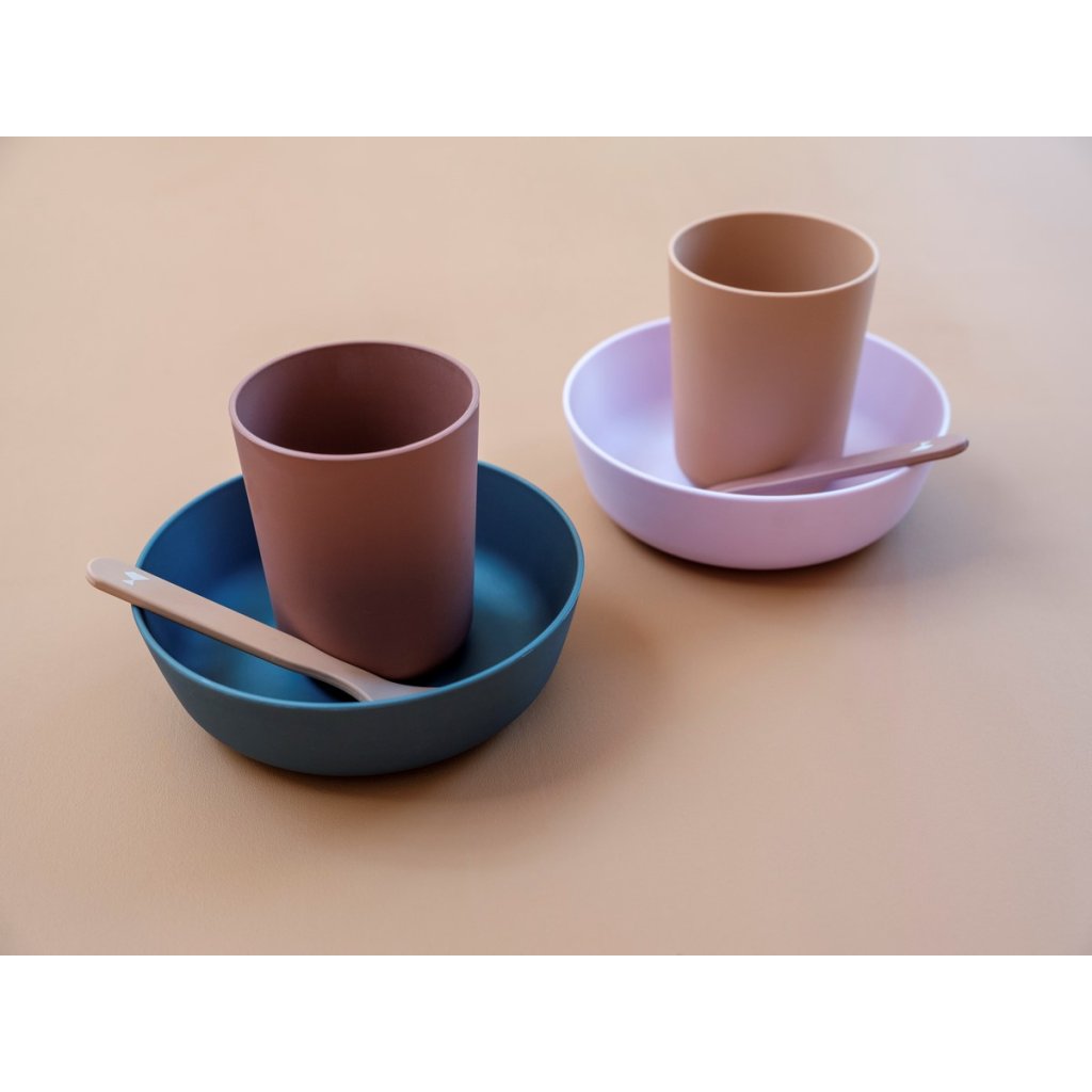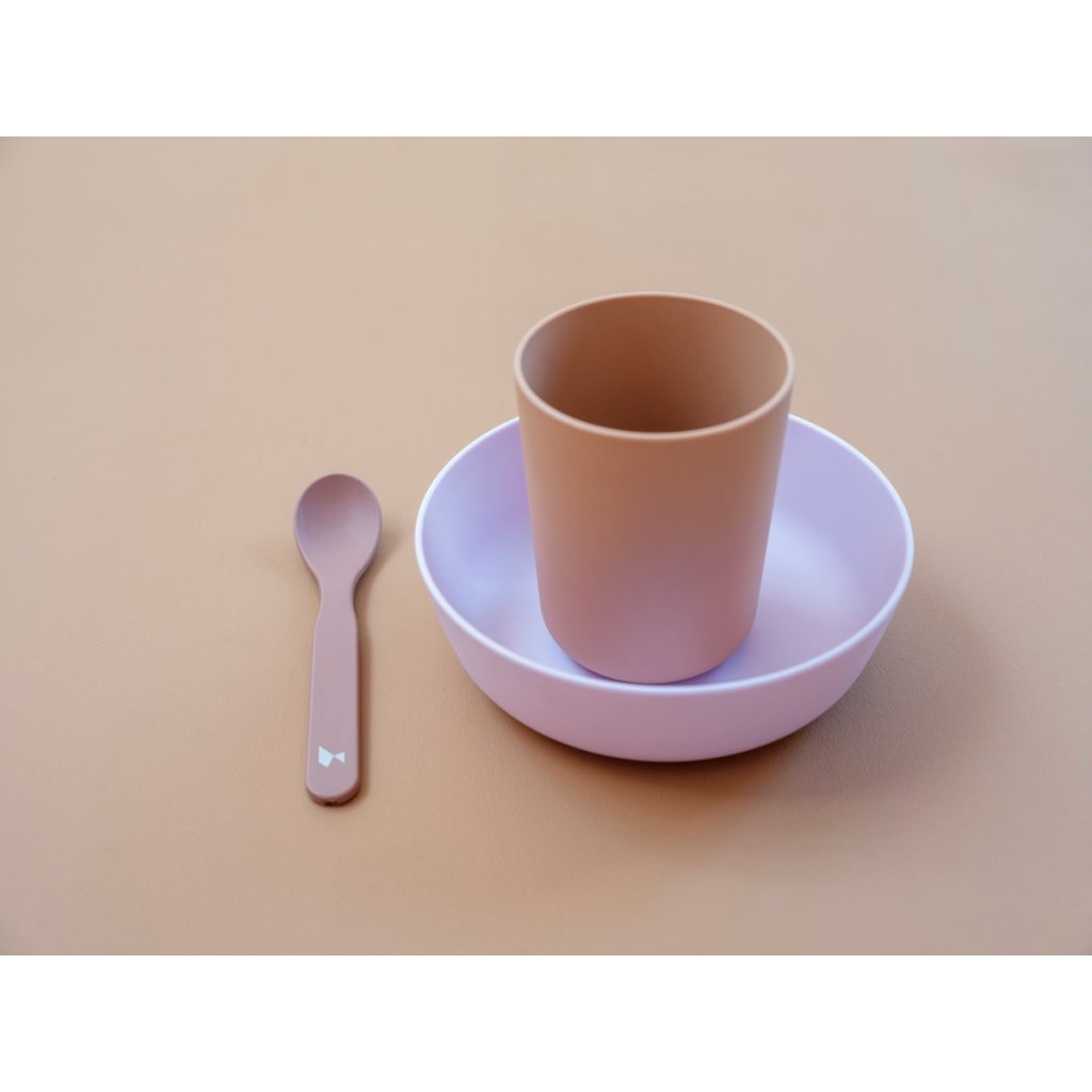 S jídelním setem vyrobeným ze 100% organického PLA se jídlo stane zábavou. Jídelní set je dodáván v krásné krabičce a skládá se z hrnku, misky, talíře a lžičky. PLA se vyrábí z obnovitelných vláken extrahovaných z plodin, jako je kukuřice, pšenice a sladké brambory. Funguje podobně jako tradiční plast, ale má zásadní výhodu v tom, že je 100% kompostovatelný v komerčních kompostovacích zařízeních.