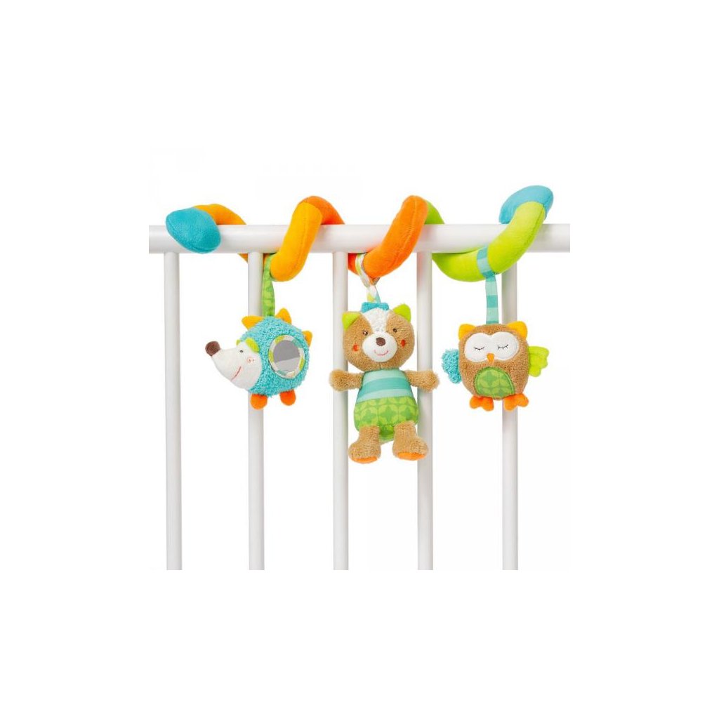 Tato barevná spirála značky Fehn může být použita mnoha způsoby, a to jak na dětskou autosedačku, kočárek, tak i na postýlku. Různé aktivity poskytnou vašemu děťátku zábavu, která navíc rozvíjí jeho zrakové, sluchové i hmatové dovednosti. Na spirále najdete pískátko, zrcátko a chrastítko. Její velikost je cca 30 cm. Svrchní materiál tvoří měkký fleece, výplň je z polyesteru a bavlny. Spirálu perte pouze v ruce.