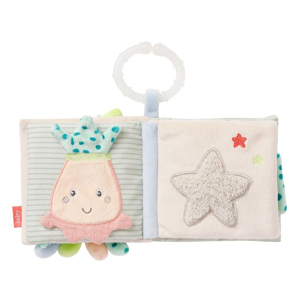Látková knížka Chobotnice z kolekce Děti moře zve dítě k objevování kouzelného podmořského světa. Chobotnice, mořský koník, sasanka a rybičky jim jistě přinesou spoustu radosti při otáčení stránek a zkoumání. Skryté pískátko, šustící papír a zrcátko hravě podporují hmat a úchop, představivost a sebepoznávání dítěte. Látková chobotnice je díky upevňovacímu kroužku ideální na doma i na cesty.