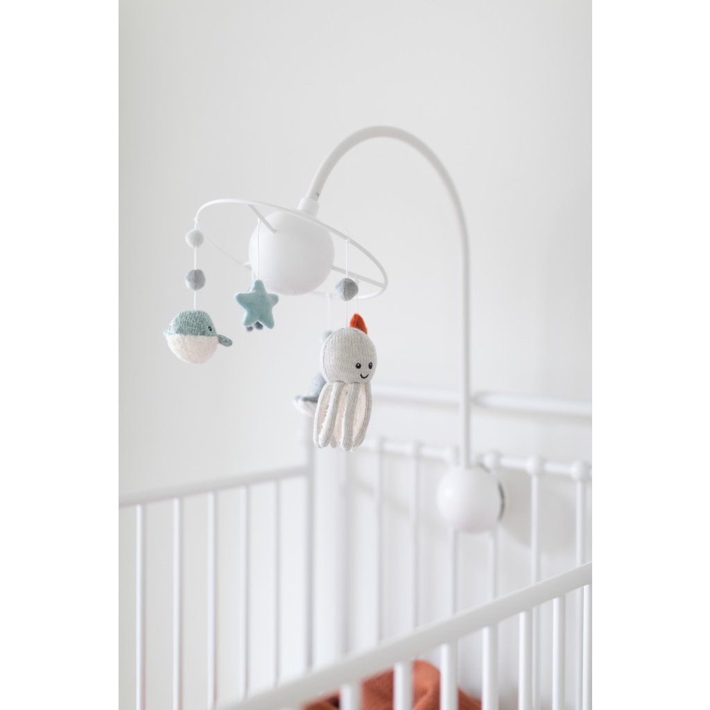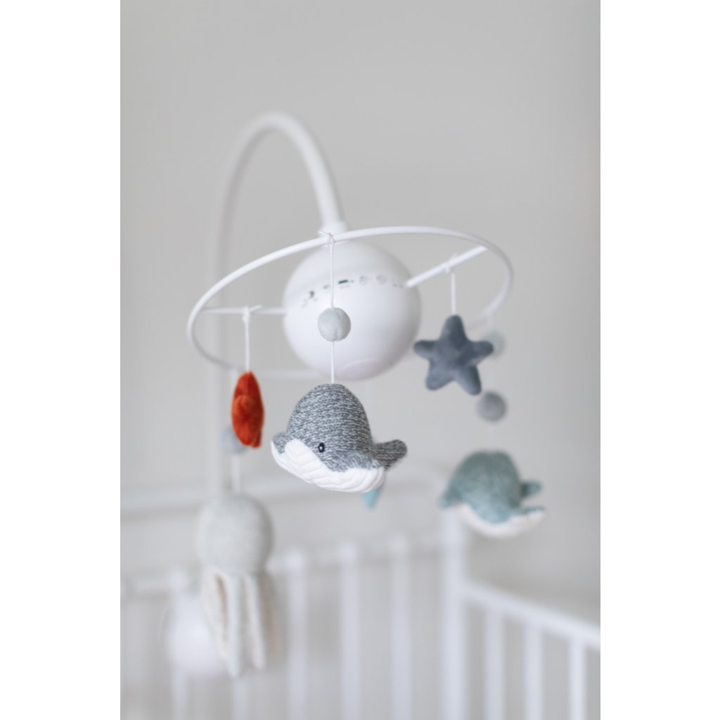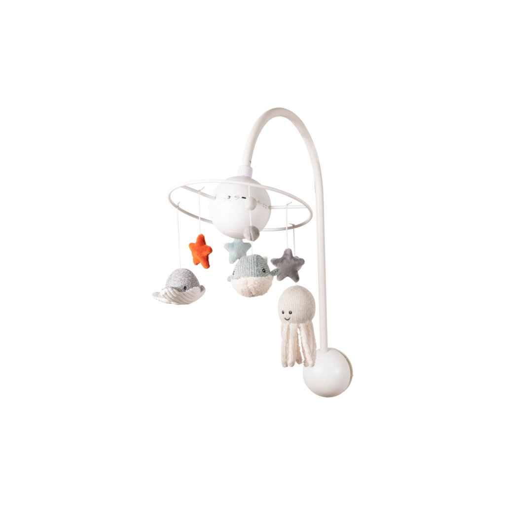 Stylový kolotoč na postýlku, který uklidní vaše dítě posloucháním sladkých melodií a sledováním zvířátek z oceánu. Můžete si vybrat ze 4 různých melodií, z nichž Mozart a Meditace jsou velmi oblíbené! Kolotoč má funkci časovače (15 nebo 30 minut), je dobíjecí a je dodáván s dálkovým ovládáním. Tento kolotoč je nejen velmi příjemný na pohled a poslech, ale také stimuluje vizuální vývoj vašeho dítěte.