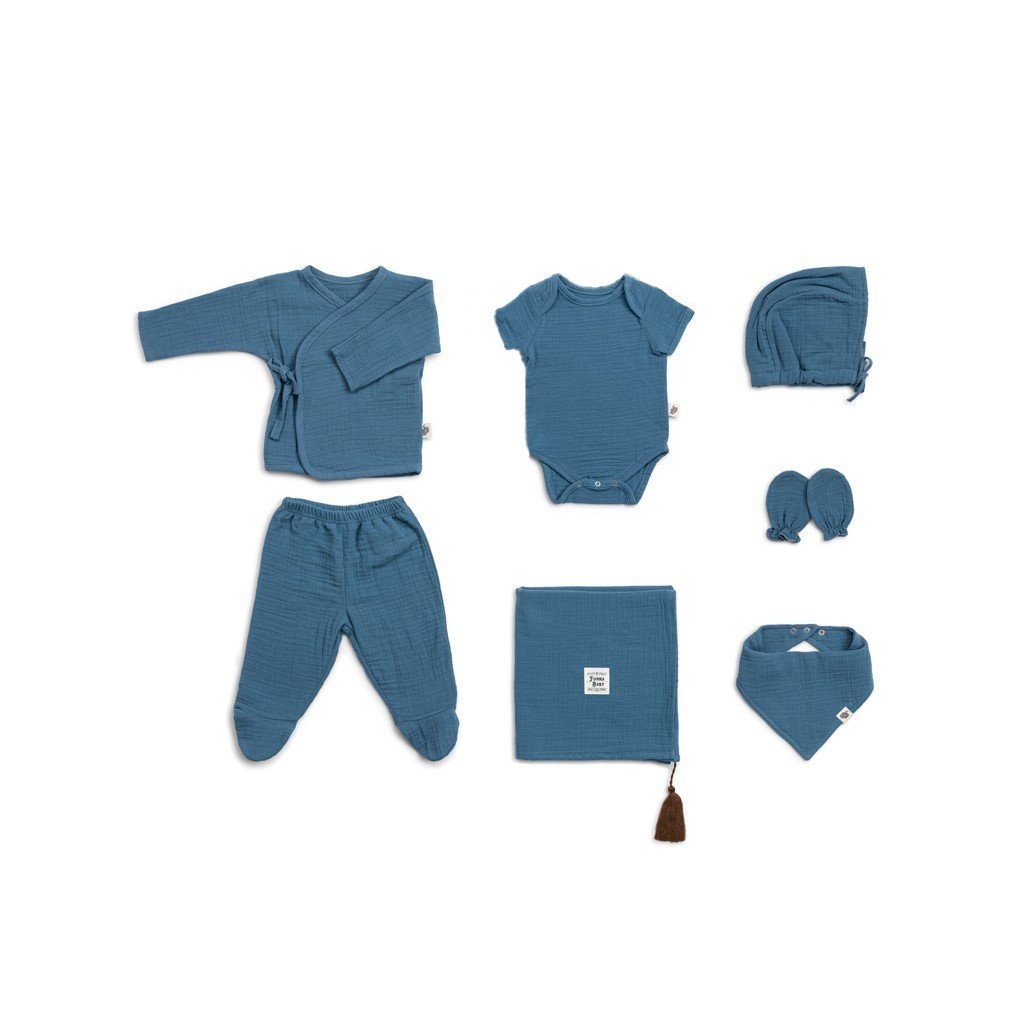 FUNNABABY Mušelínový Novorozenecký set 8 dílný Province Petrol vel 0 - 3 m.