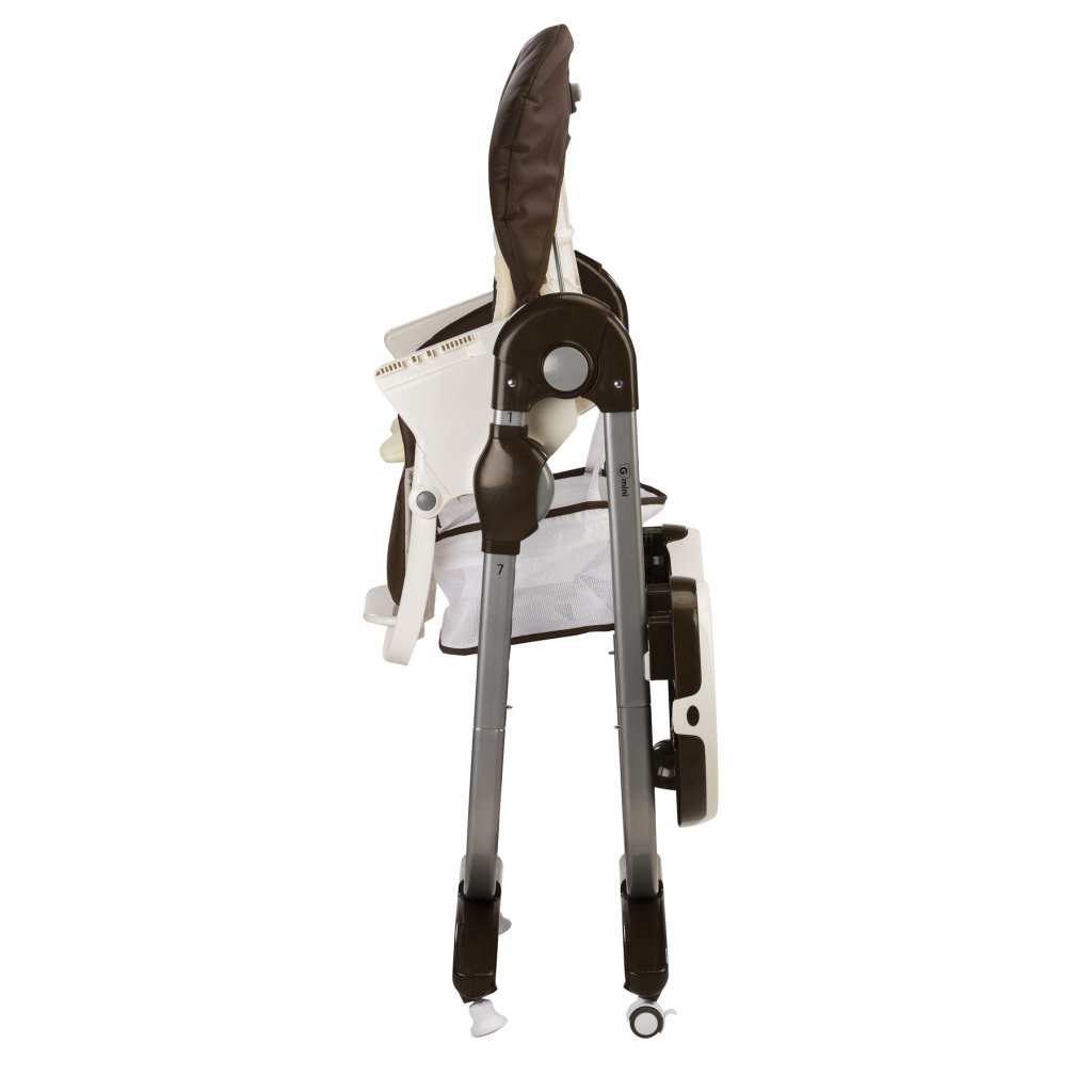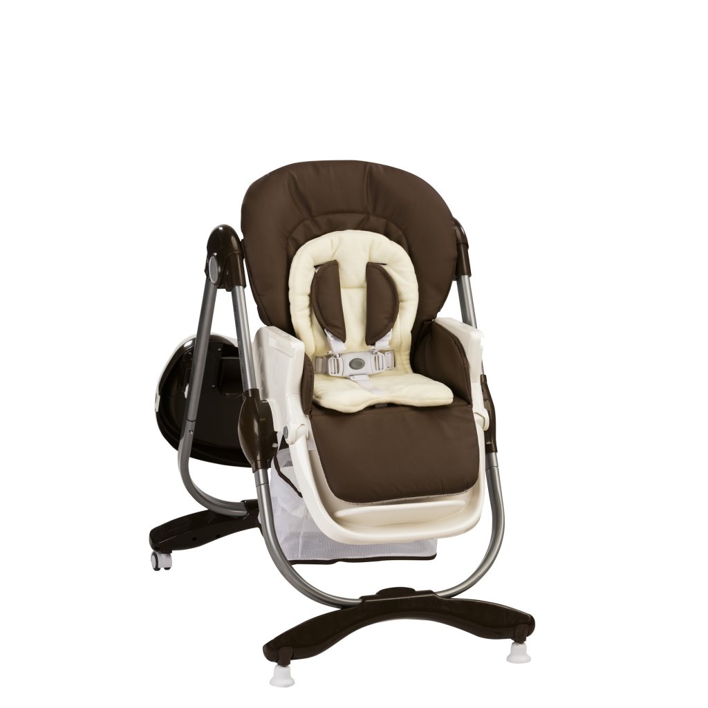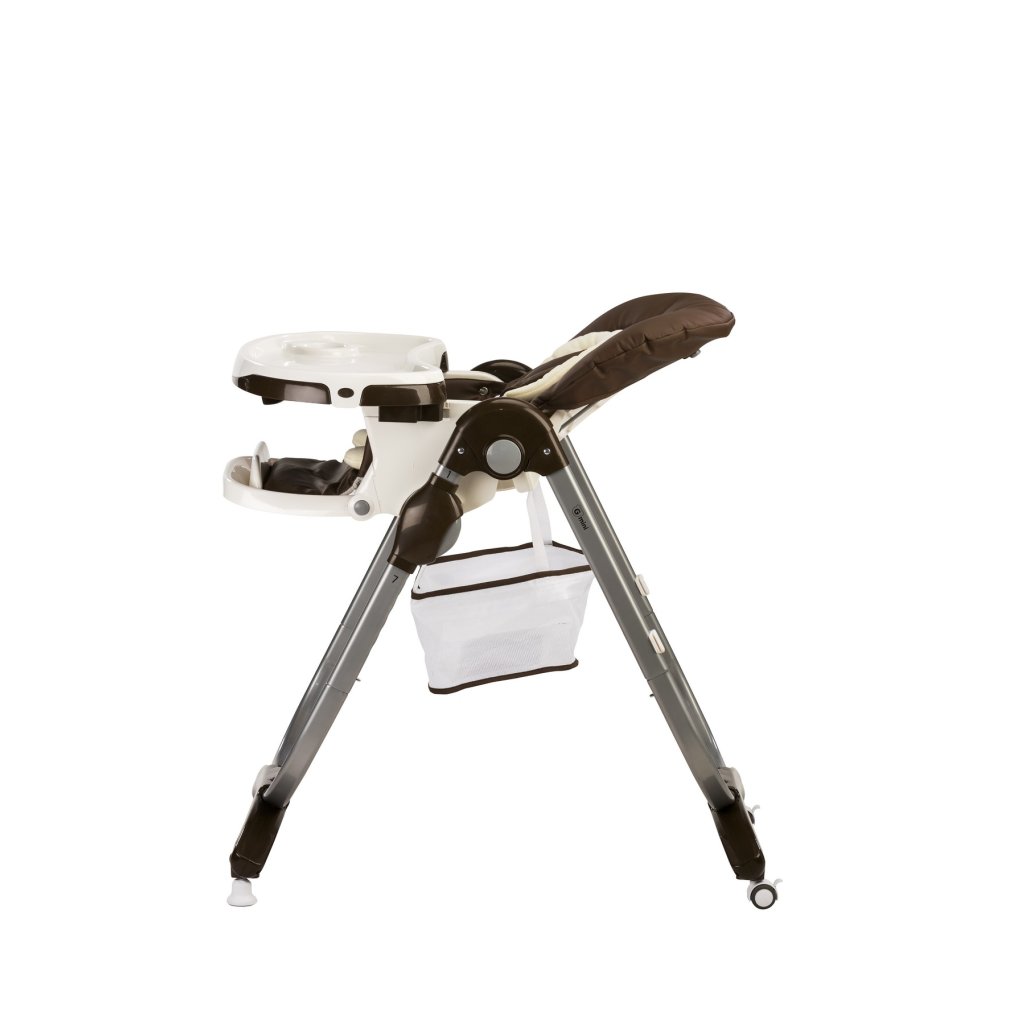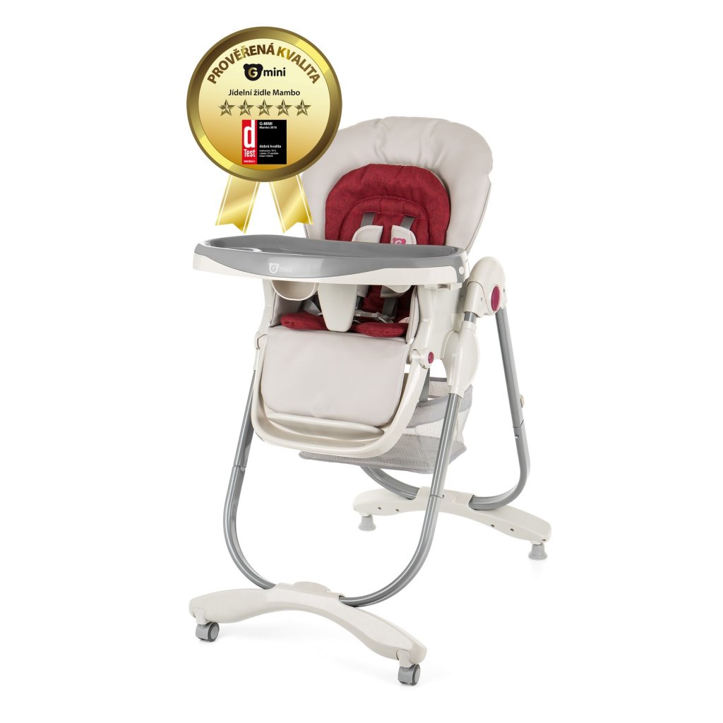 Opěrku zad lze nastavit do 3 pozic, výška je polohovatelná do 7 pozic. Tác lze nastavit do 3 pozic. Přídavné vnitřní polstrování. Opěrku nohou lze polohovat do 3 pozic. Tác lze zavěsit na zadní nohy. Kompaktní po složení, samostatně stojící. Židlička má béžovou barvu s červeným detailem.