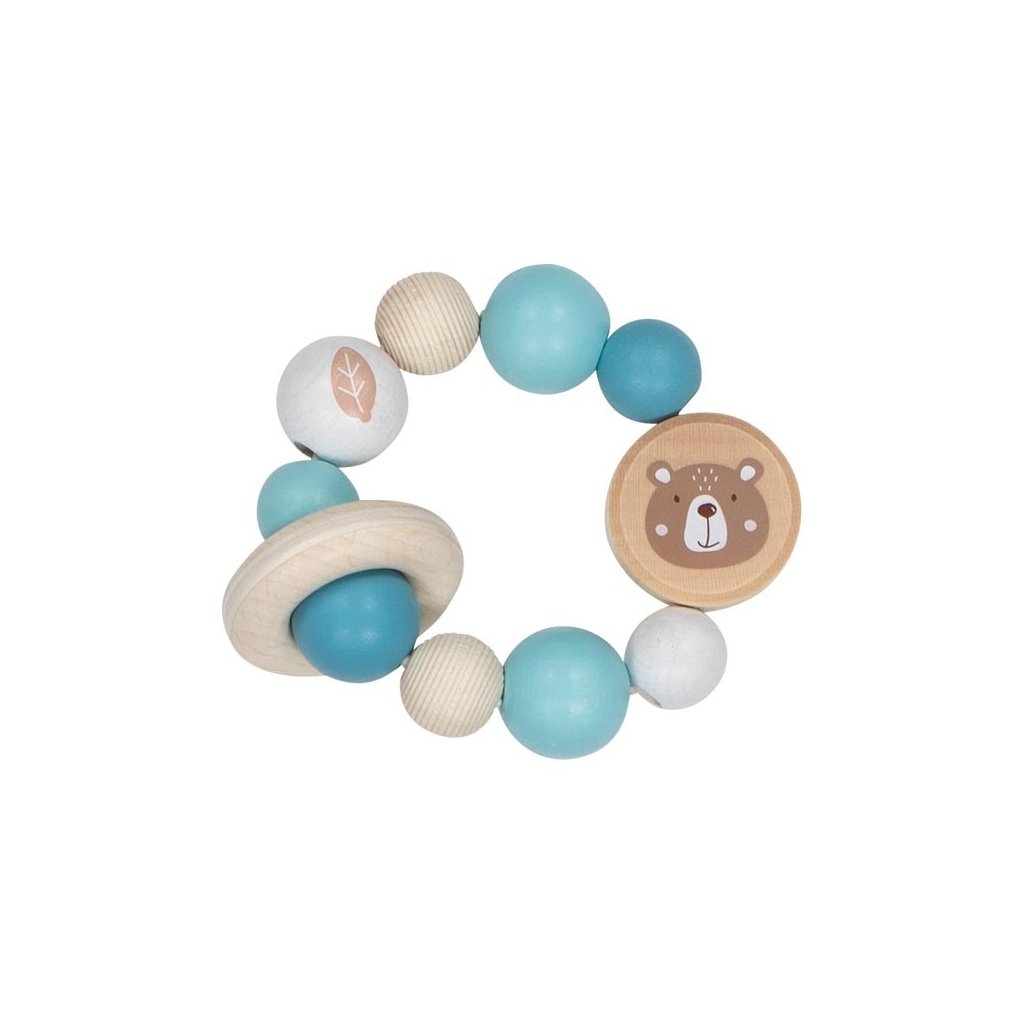 V této hračce pro miminka se setkává přírodní dřevo a nezávadný barevný silikon. Miminka tak mohou objevovat různé povrchy, tvary, barvičky, kresby i neposedný kroužek. Dřevěný korálek s jemnými vroubky je pro děti obzvláště zajímavý. Nedřevěné korálky jsou vyrobeny ze silikonu, který je na omak lehce poddajný jako např. guma. Vhodné od 0 let.