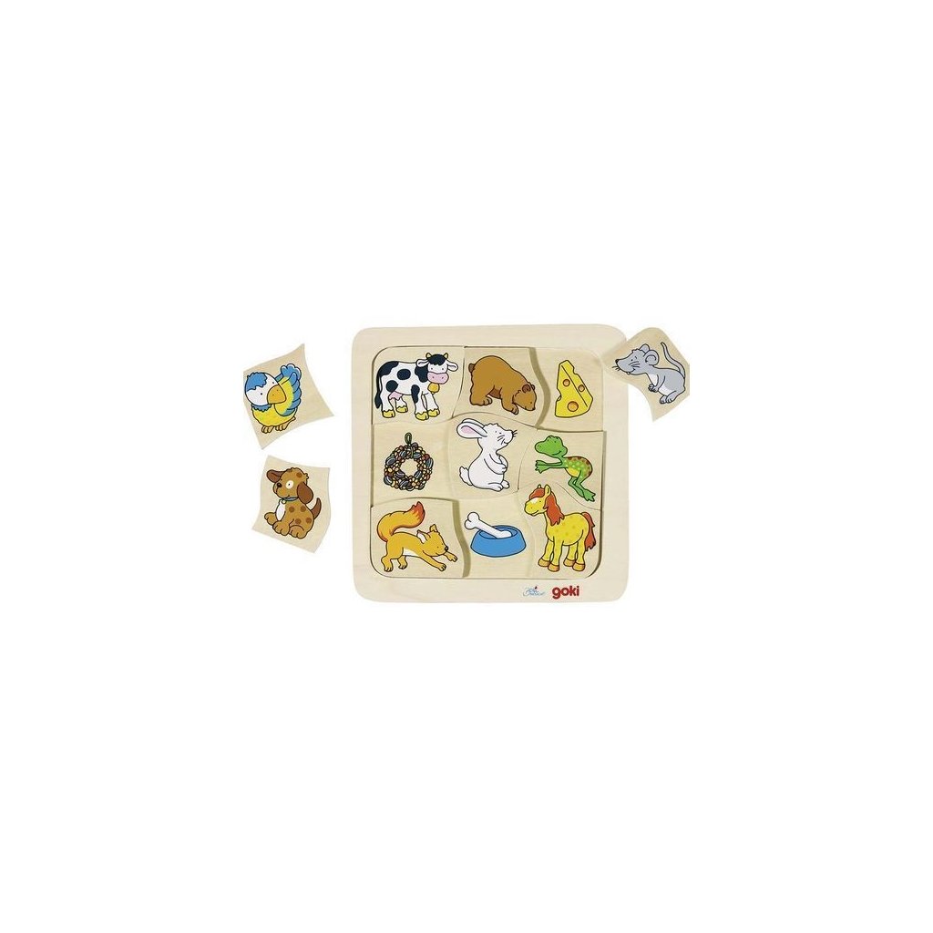Skládačka na dřevěné desce má 9 dílů. Jednotlivé dílky puzzlí jsou vyšší, než samotná podložka, aby se dětem jednotlivé dílky lépe pokládaly a odebíraly.