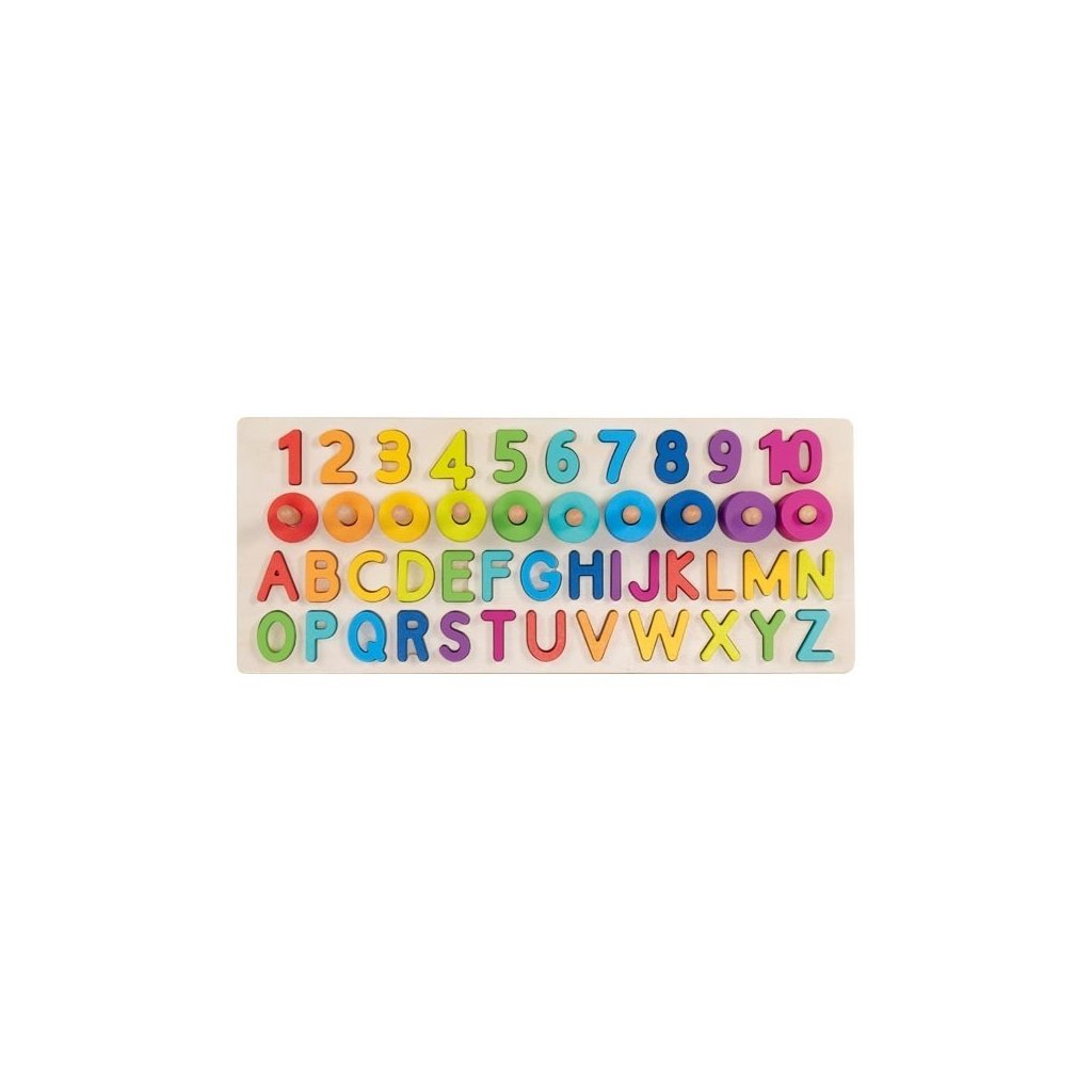 Je to hraní, nebo učení? Nejlépe obojí zároveň. Tato dřevěná vzdělávací tabulka hravou formou seznamuje děti se světem písmen a čísel. Barevná písmena děti vkládají do správných otvorů a k jednotlivým číslicím přiřazují odpovídající počet kroužků. Díky tomu si přirozeně rozvíjejí logické myšlení, jemnou motoriku i základní matematické a jazykové dovednosti – a hlavně je to baví.