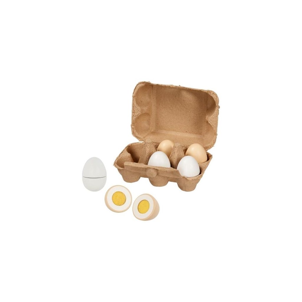 Bez vajíček se neobejde ani dětský krámek a ani správná dětská kuchyňka. Malý karton obsahuje celkem 3 béžová a 3 bílá vajíčka na suchý zip. Vhodné od 3 let.