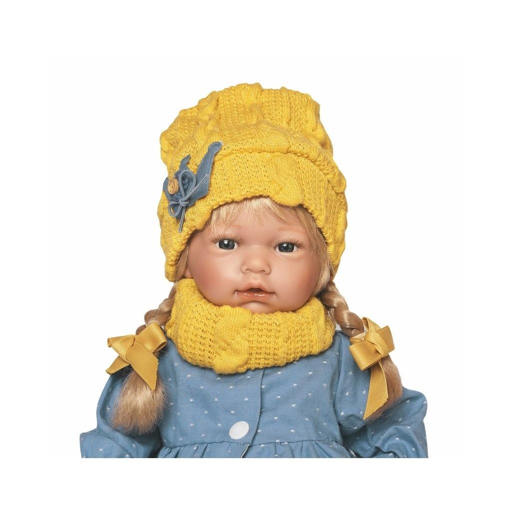 Zvuková panenka s měkkým látkovým tělem, která po zatlačení na hrudníku začne vydávat reálný zvuk smějícího se dítěte. Panenka má delší vlásky "rostlé" po celé hlavě, které se dají česat. Ruce a nohy jsou k tělu přichyceny kloubem. Miminko je polohovací a může i sedět. Velikost 36 cm. Ručně vyrobeno ve Španělsku, baleno v dárkové krabici. Doporučený věk od 3 let. Součástí balení je 3 x knoflíková baterie LR44 s návodem na její výměnu. Baterie jsou spotřební zboží a proto jejich vybití není důvodem k reklamaci panenky.