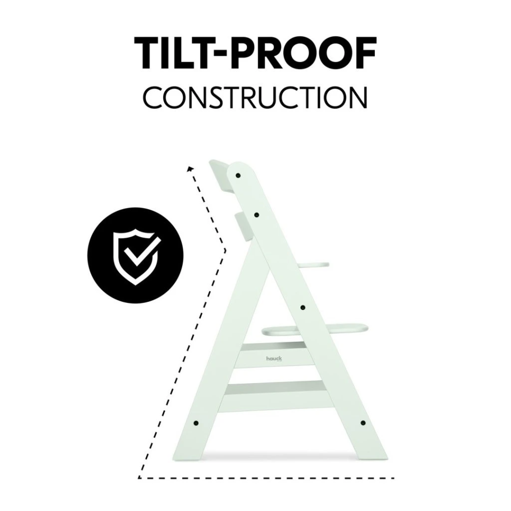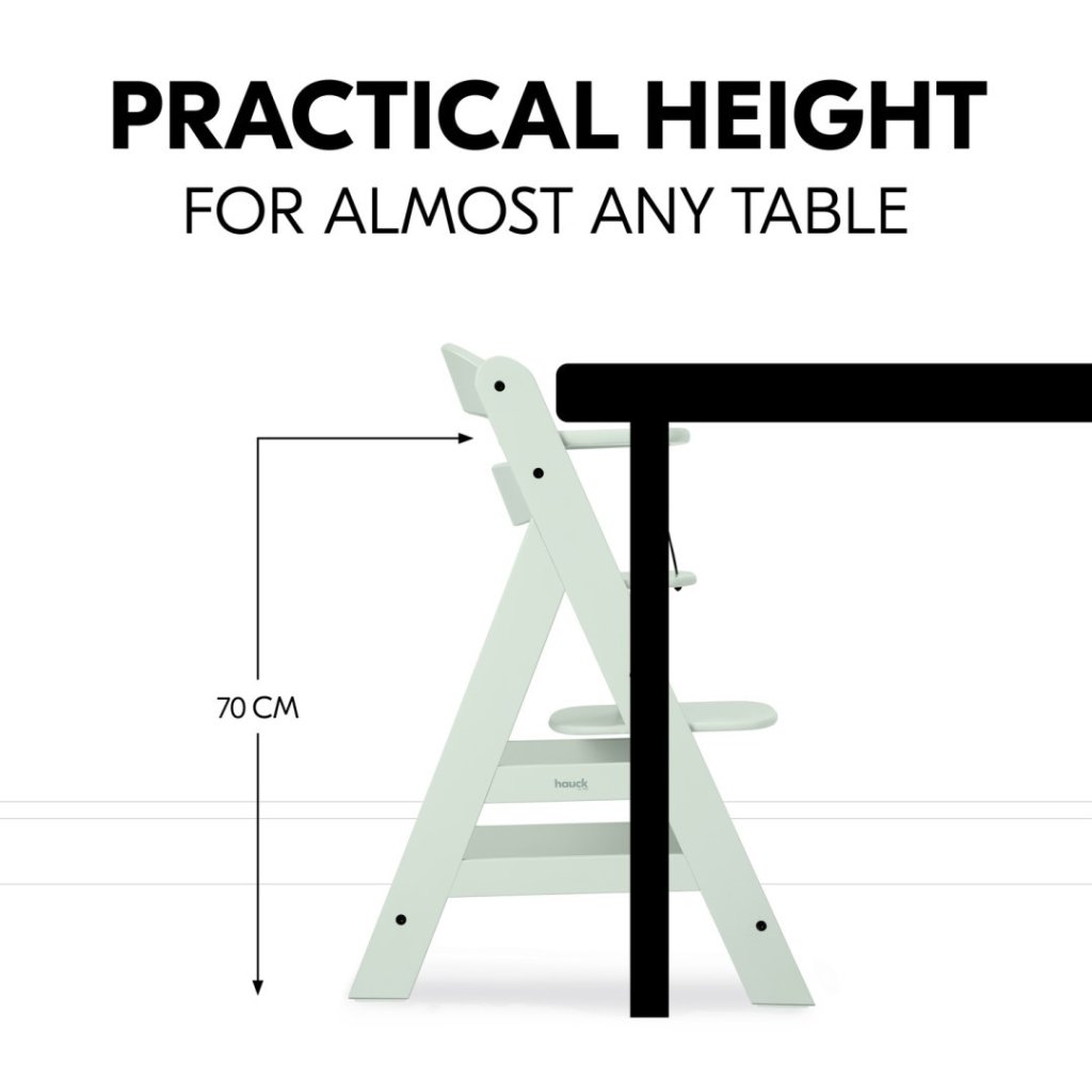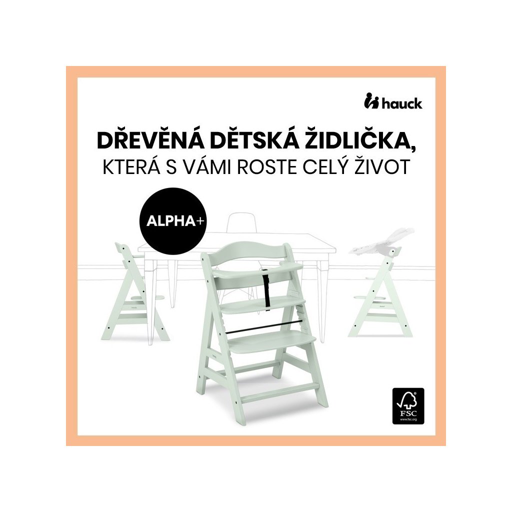 Alpha+ je vyrobena z evropského bukového dřeva pocházejícího z lesů s certifikátem FSC®, který oceňuje trvale udržitelné a ekologické lesní hospodaření na ochranu rostlin a zvířat. Díky nastavitelnému sedátku a nožní opěrce se židlička Alpha+ přizpůsobí růstu vašeho dítěte. Díky stabilní konstrukci lze židličku používat až do hmotnosti 90 kg. Díky stabilní konstrukci a integrovaným podlahovým kluzákům je židlička Alpha+ odolná proto převrhnutí. Když se vaše dítě od stolu odstrčí, židlička se jednoduše mírně posune dozadu. Bezpečnostní pás i pětibodové bezpečnostní pásy jsou součástí balení a pomáhají zajistit bezpečnost vašeho dítěte. Jsou také kompatibilní s dalším příslušenstvím hauck. Ochranný oblouk je nezbytný pro menší děti, později jej lze odejmout, aby mohlo dítě pohodlně sedět u jídelního nebo psacího stolu. Jídelní židličku Alpha+ lze zkombinovat s příslušenstvím Křesílko/sedátko díky čemuž lze židličku použít již od narození. V balení je 5ti bodový bezpečnostní pás, vysoká židlička, ochranný oblouk, bezpečnostní mezi-nožní popruh. Vhodná pro děti od 6 měsíců do 90 kg.