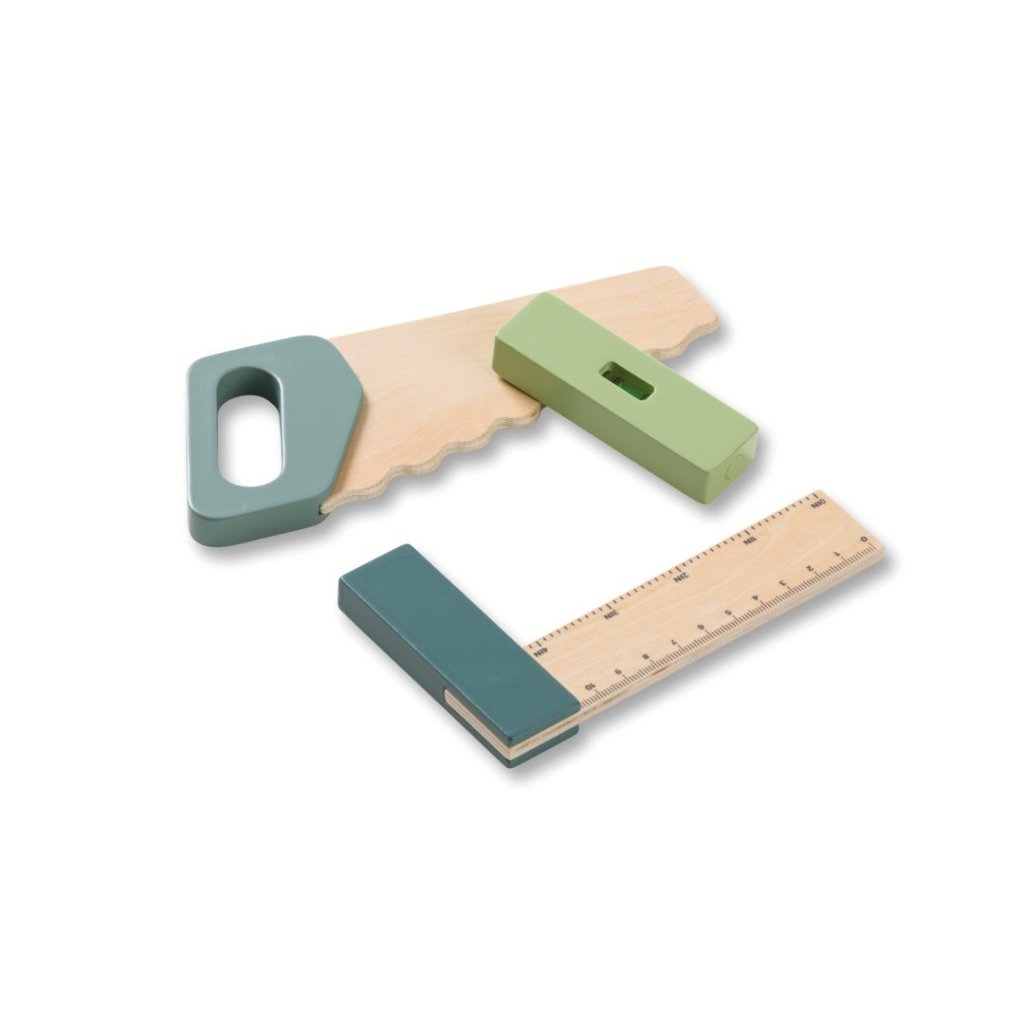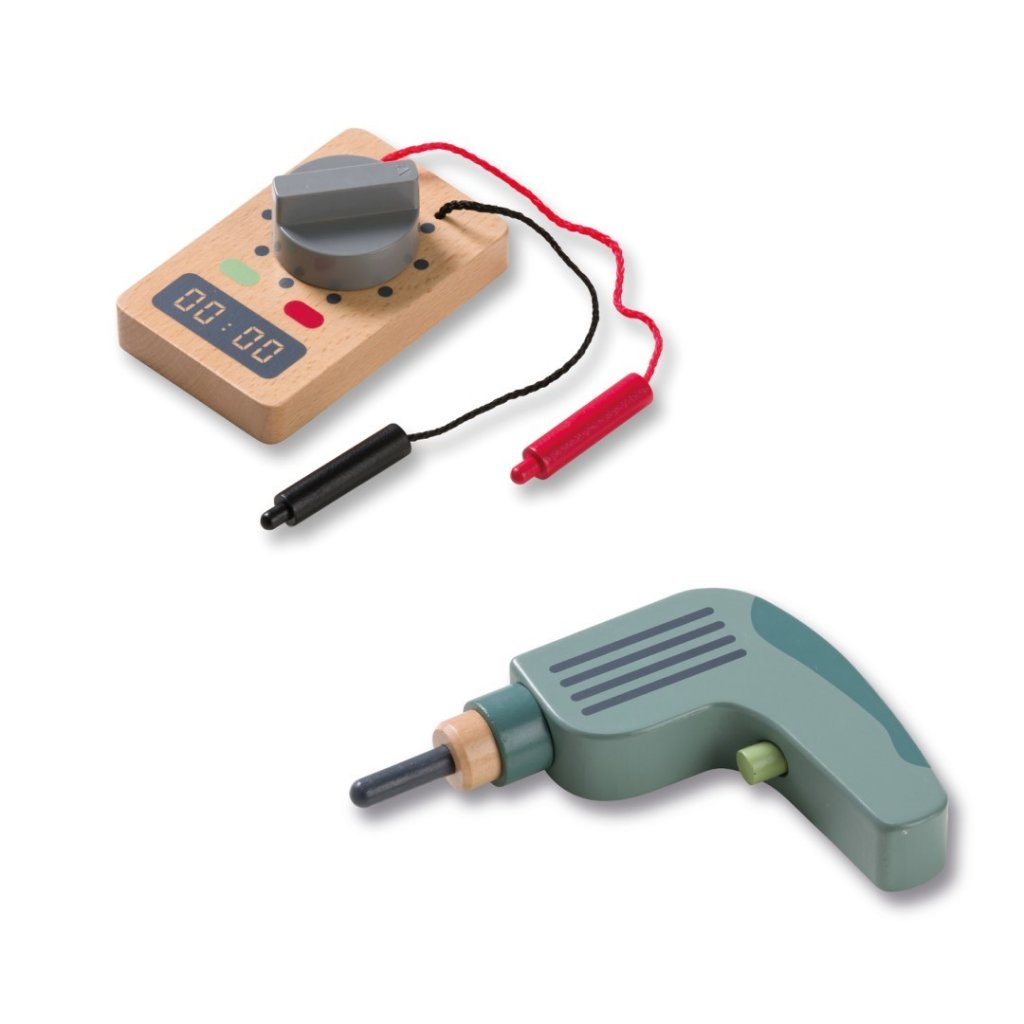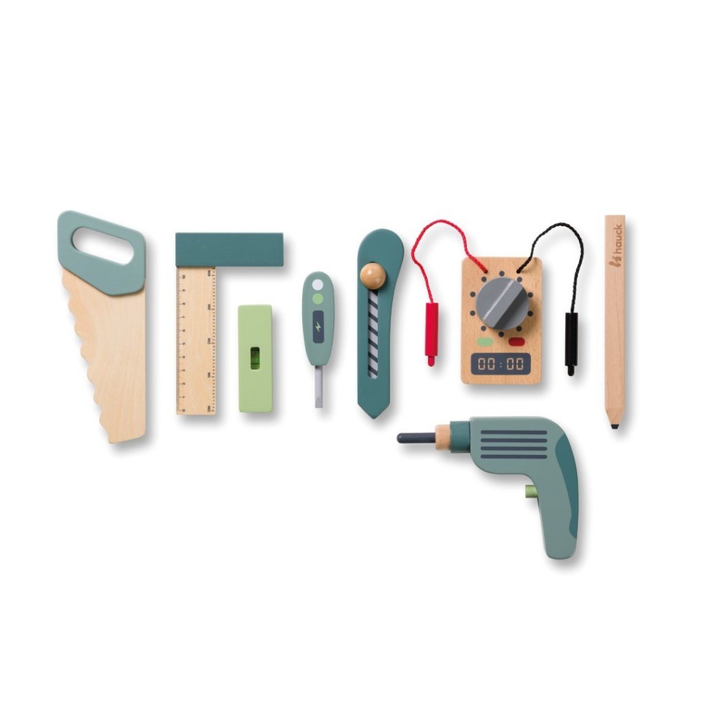 Realistické dřevěné nářadí na hraní podněcuje vaše dítě k poznávání nářadí a k nápaditým hrám na role o řemeslech a opravách. Vhodné od 3 let - i na cesty. Díky praktickému opasku s poutky má vaše dítě neustále volné ruce, může nářadí rychle uložit a mít je po ruce. Vaše dítě si může opasek s nářadím individuálně nastavit a samo si jej rozepnout a zapnout díky praktické zacvakávací přezce. Dětská sada nářadí obsahuje vše, co vaše dítě jako řemeslník nebo kutil potřebuje: Sada obsahuje: opasek s nářadím, vrtačku, pilku, multimetr, vodováhu, tužku, truhlářský čtyřhran, fázovou zkoušečku a řezací nůž. Sada nářadí je vyrobena z odolného dřeva, které pochází z lesů s certifikací FSC®, který zaručuje udržitelné a ekologické využívání lesů chránící rostliny a zvířata.