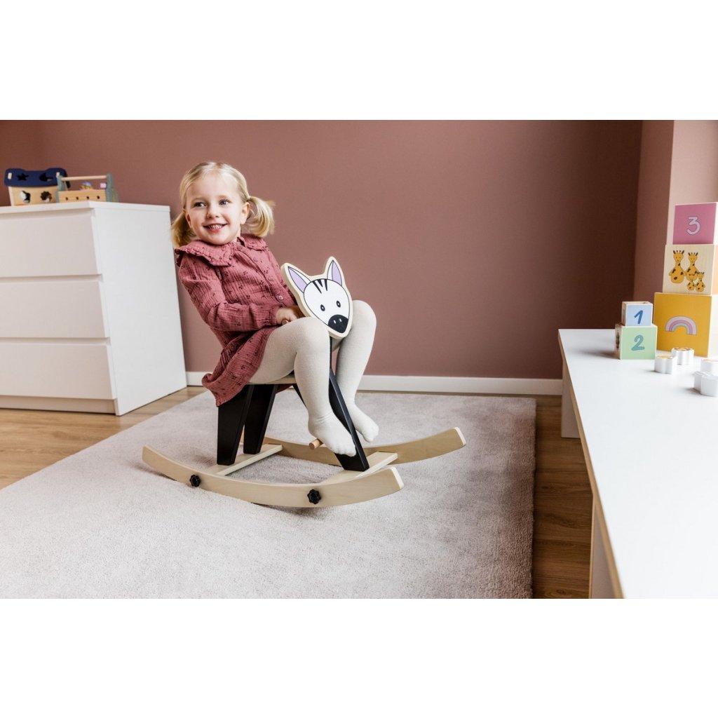 Houpáním dopředu a dozadu na houpacím zvířátku si dítě hravou formou trénuje smysl pro rovnováhu. Pro zpestření můžete houpadlo otočit a proměnit tak houpátko v sedátko. Díky držadlům a opěrkám na nožičky se vaše dítě může houpacího zvířátka vždy bezpečně přidržovat a houpat se dopředu a dozadu. Vhodné od 18 měsíců. Houpadlo lze snadno a rychle odejmout, otočit a bezpečně přišroubovat zpět na místo, čímž se houpací zvířátko promění ve skvělé místečko k sezení pro vaše dítě. Houpací zvířátko je vyrobeno z odolného dřeva, které pochází z lesů s certifikátem FSC®, který zaručuje udržitelné a ekologické využívání lesů chránící rostliny a zvířata.