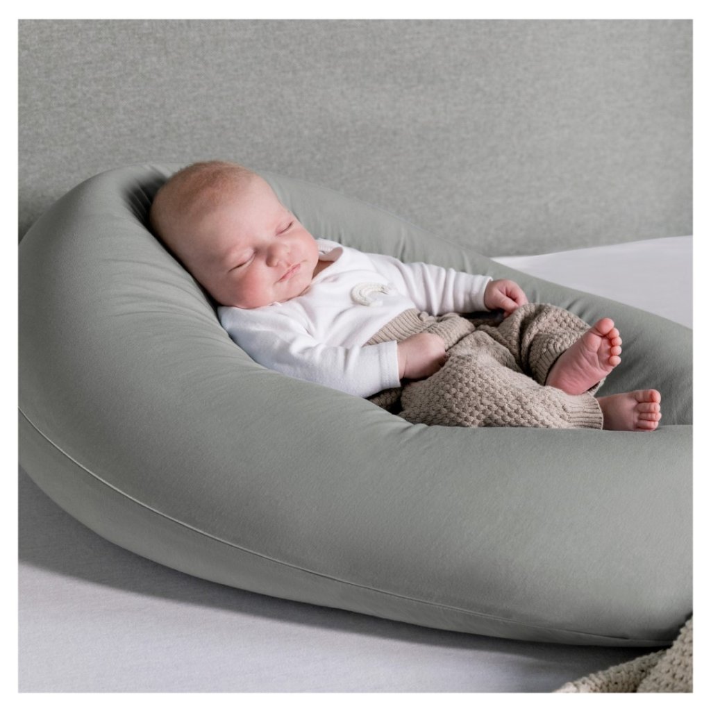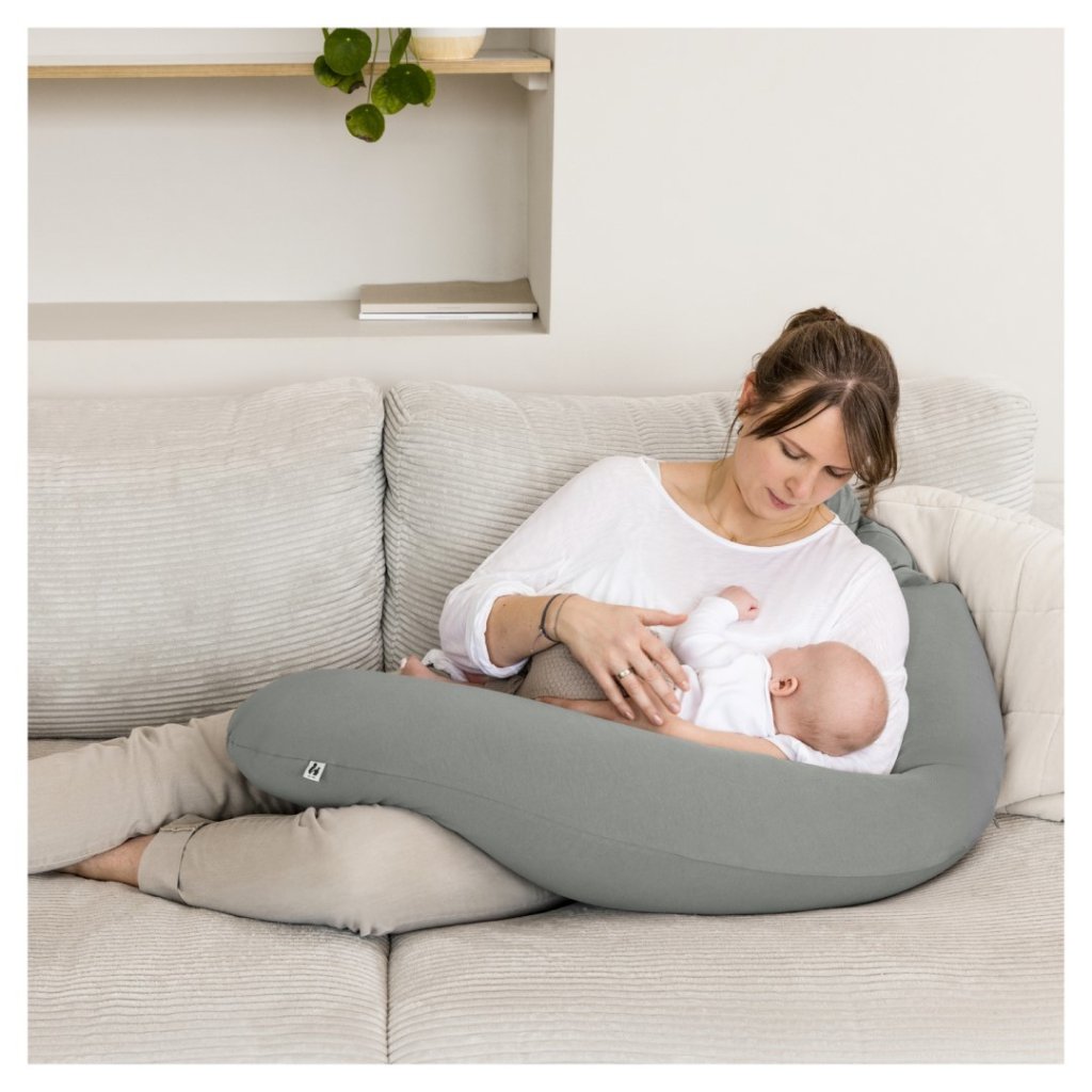 Polštář pro spaní na boku je vítaným doplňkem i během těhotenství, podepře vaše bříško a zajistí lepší spánek. Lze jej použít také jako kojící polštář, nebo jako hnízdečko pro miminko. Jakmile se vaše miminko narodí, můžete polštář využít k posílení pouta mezi matkou a dítětem. Vaše miminko se v jeho blízkosti cítí bezpečně a jistě, zatímco vaše ruce si odpočinou při kojení. Dvojitý zip na vnitřním polštáři umožňuje zvýšit nebo snížit výplň z mikrokuliček přesně podle vašich potřeb. Kojící polštář je dodáván v odolné úložné tašce se zipem a vyztuženým uchem pro přenášení; můžete ji použít pro přepravu nebo uložení věcí pro miminko. Kojící polštář vyrobený v Německu zajistí vašemu miminku zdravý start do života, protože potah a výplň splňují nejvyšší požadavky normy OEKO-TEX® STANDARD 100.Tichá výplň z mikrokuliček se jemně přizpůsobí tělu vašeho dítěte a zajistí nerušené kojení a mazlení. Žerzejová bavlna je šetrná k pokožce a zajišťuje pohodlí v každém ročním období - v zimě hřeje a v létě chladí. Díky zipu lze potah snadno sundat.