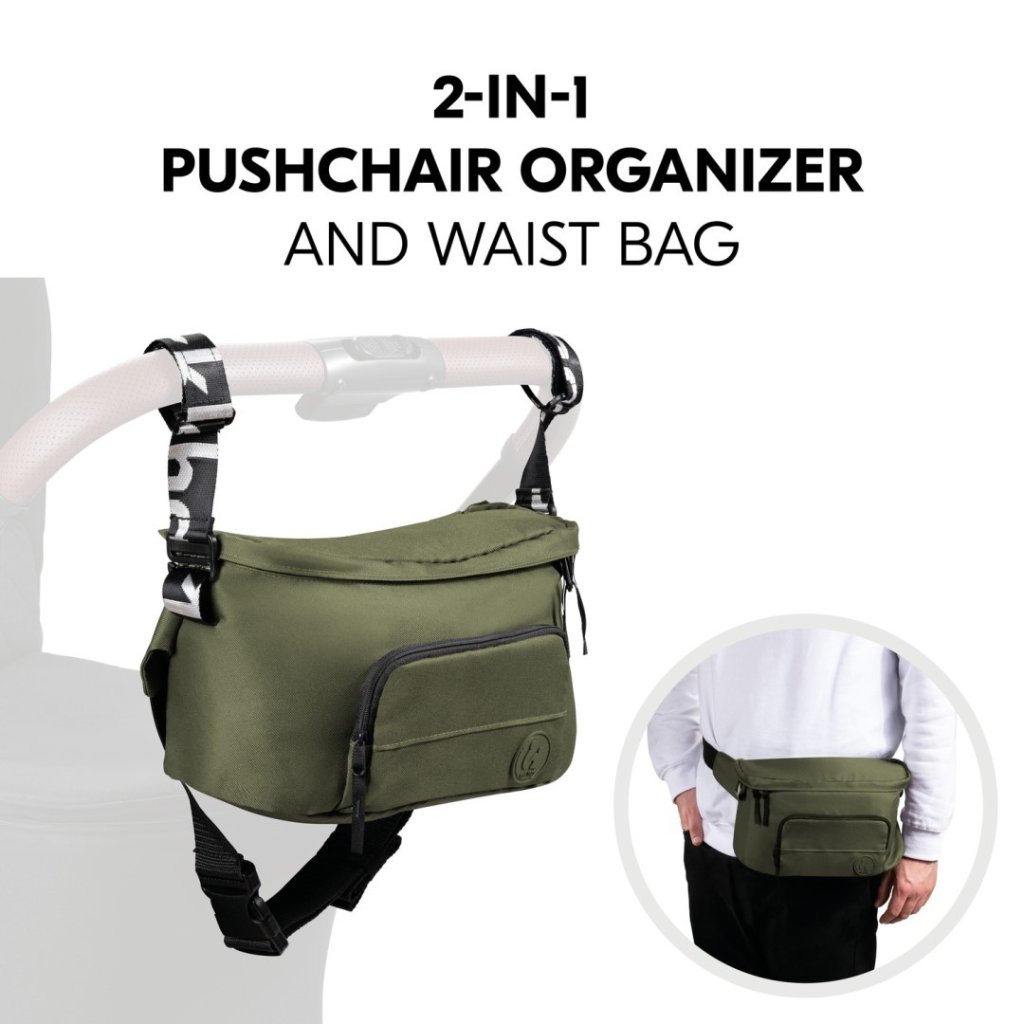 Pokud jste často na cestách je tato taška pro Vás ideální. Všechny věci budete mít snadno po ruce a tašku můžete snadno připevnit buď na kočárek nebo si ji vzít přes rameno nebo kolem pasu. Organizér velmi snadno a rychle připevníte na kočárek díky nastavitelným suchým zipům. V případě potřeby lze upevňovací pásky odepnout. Organizér poskytuje dostatek místa pro potřebné věci pro miminko, které tak budete mít stále po ruce. Na přední straně je kapsa na telefon a uvnitř praktická kapsa na klíče. Všechny kapsy jsou uzavíratelné na zip a tak vše zůstane bezpečně uvnitř a na svém místě. Pokud si chcete tašku vzít ve variantě přes rameno nebo jako ledvinku kolem boků, stačí jen nastavit široký popruh a vyrazit.