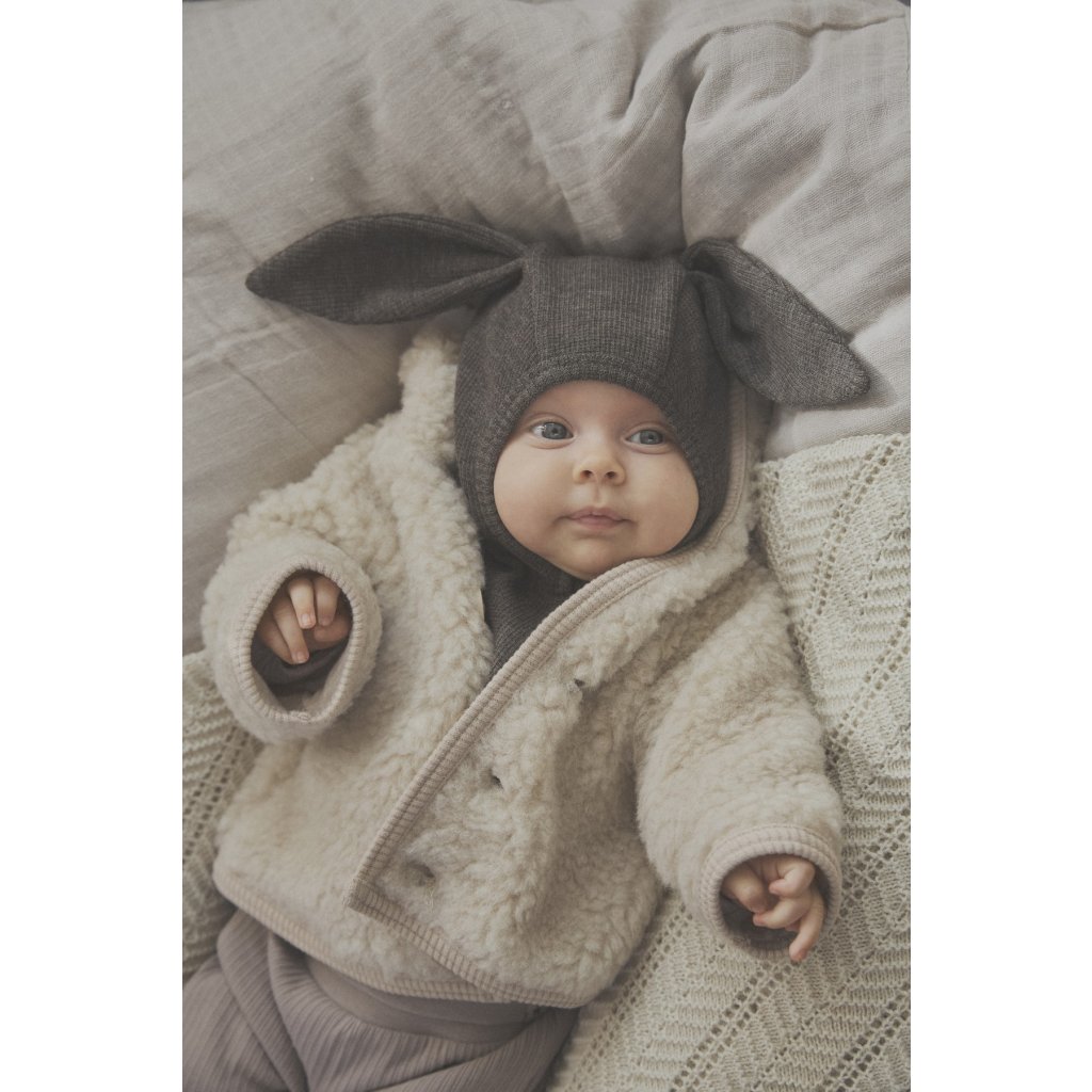 Krásná kukla HUTTEliHUT z měkké vlněné žebrované látky. Kukla HUTTEliHUT má kulatý tvar hlavy se dvěma roztomilými dlouhými králičími ušima nahoře a úzký, elastický žebrovaný okraj kolem obličeje, který zajišťuje dobré padnutí. Čepice se vyznačuje praktickým rozděleným designem s prodlouženou zadní částí. Vyrobeno z merino vlny. Certifikováno dle OEKO-TEX® STANDARD 100, certifikace č. 2276-364 DTI. Tento výrobek je vyroben z merino vlny a je certifikován WOOLMARK – Wool Rich Blend na základě licence č. 0030001353 od společnosti THE WOOLMARK COMPANY. Tento výrobek je vyroben z vlny, která je při správné péči známá svou odolností: Perte pouze v případě potřeby. Vyberte jemný prací prostředek na vlnu. Nepoužívejte aviváž. Vždy volte jemný prací cyklus na vlnu a oděv obraťte naruby. Použijte nízký cyklus odstředění. Upravte tvar, dokud je oděv mokrý. Pro ruční praní použijte vlažnou vodu a nežmýkejte; jemně vyžehlete ručníkem, abyste odstranili přebytečnou vodu. Nechte uschnout rozložené na ručníku – nedávejte na radiátor ani do sušičky.