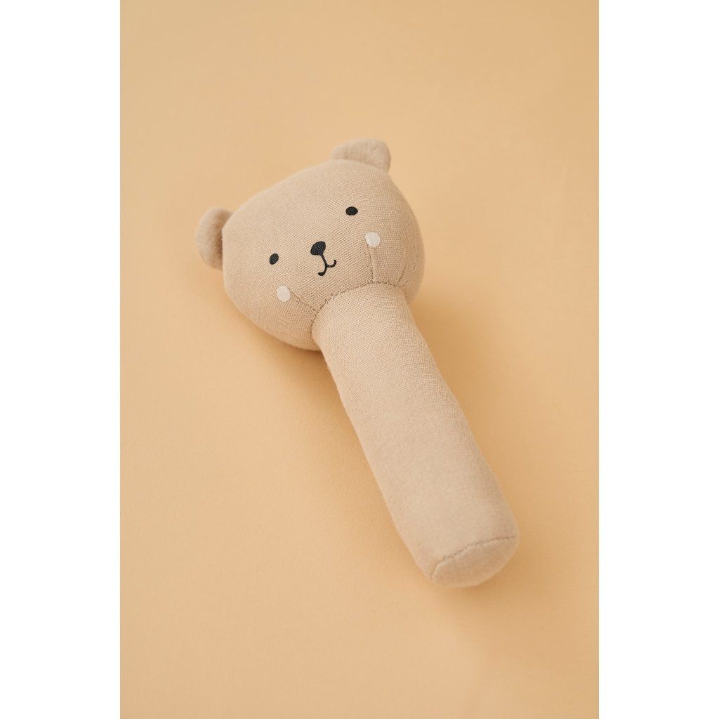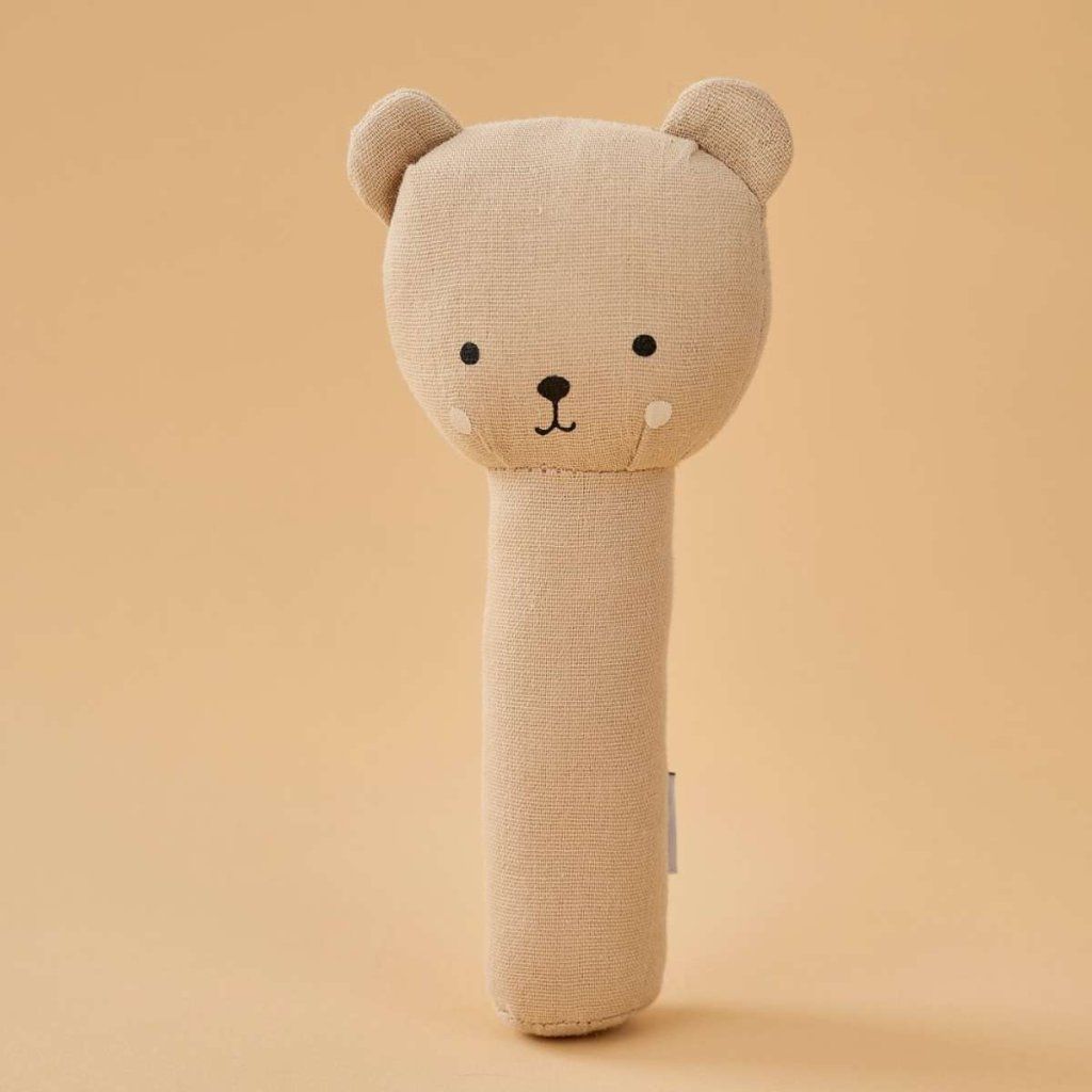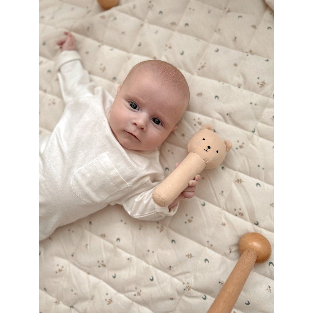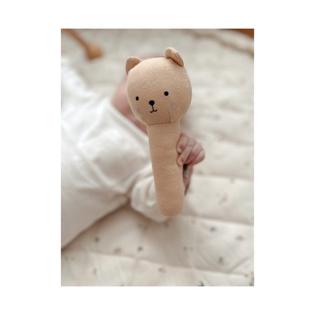 Roztomilé chrastítko s motivem medvídka se stane oblíbeným společníkem vašeho miminka už od prvních dnů. Jemný zvuk při zatřesení přirozeně stimuluje smysly a vybízí dítě k objevování. Díky měkkému provedení a praktické rukojeti se snadno drží i v těch nejmenších ručičkách. Ideální hračka pro každodenní chvíle – doma, v kočárku i na cestách.