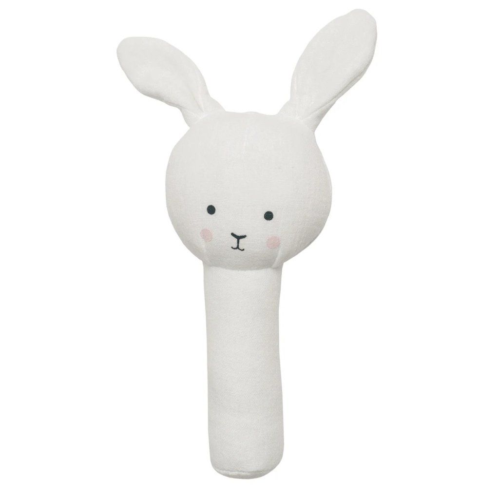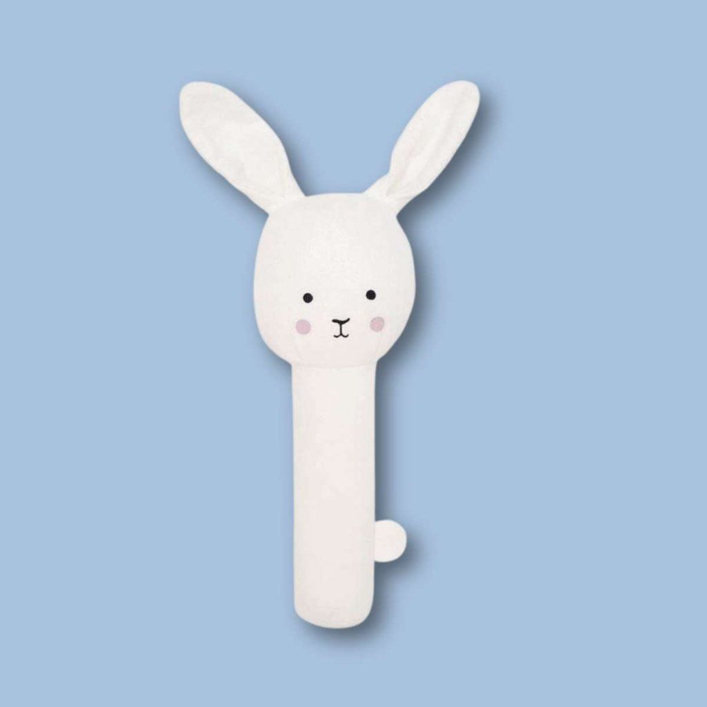 Roztomilé chrastítko ve tvaru zajíčka potěší každé miminko a zpříjemní mu první objevování světa. Jemný zvuk při zatřesení stimuluje smysly a podporuje přirozenou zvědavost dítěte. Díky měkkému provedení a ergonomické rukojeti se snadno drží i v malých ručičkách. Ideální společník pro každodenní chvíle – doma, v kočárku i na cestách.