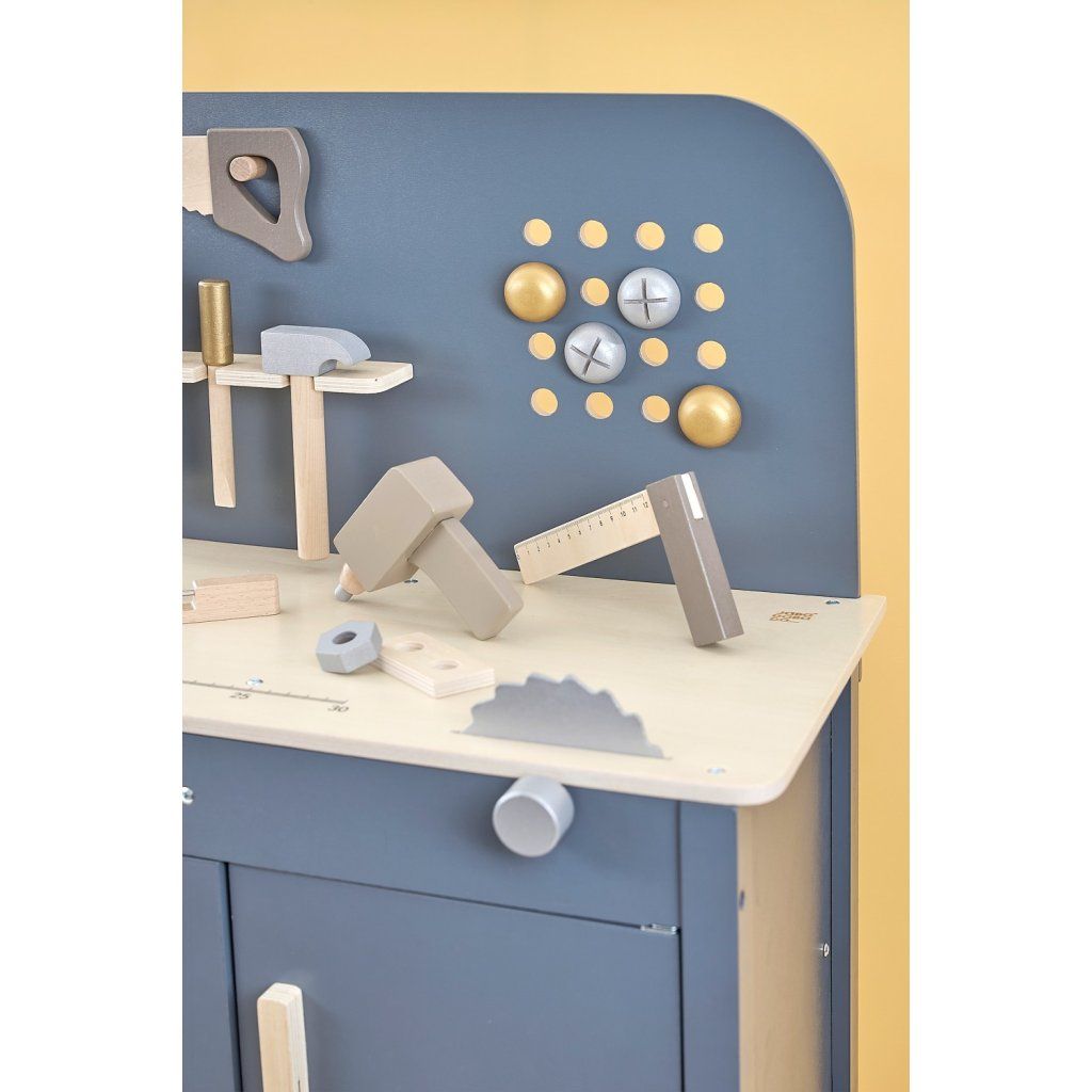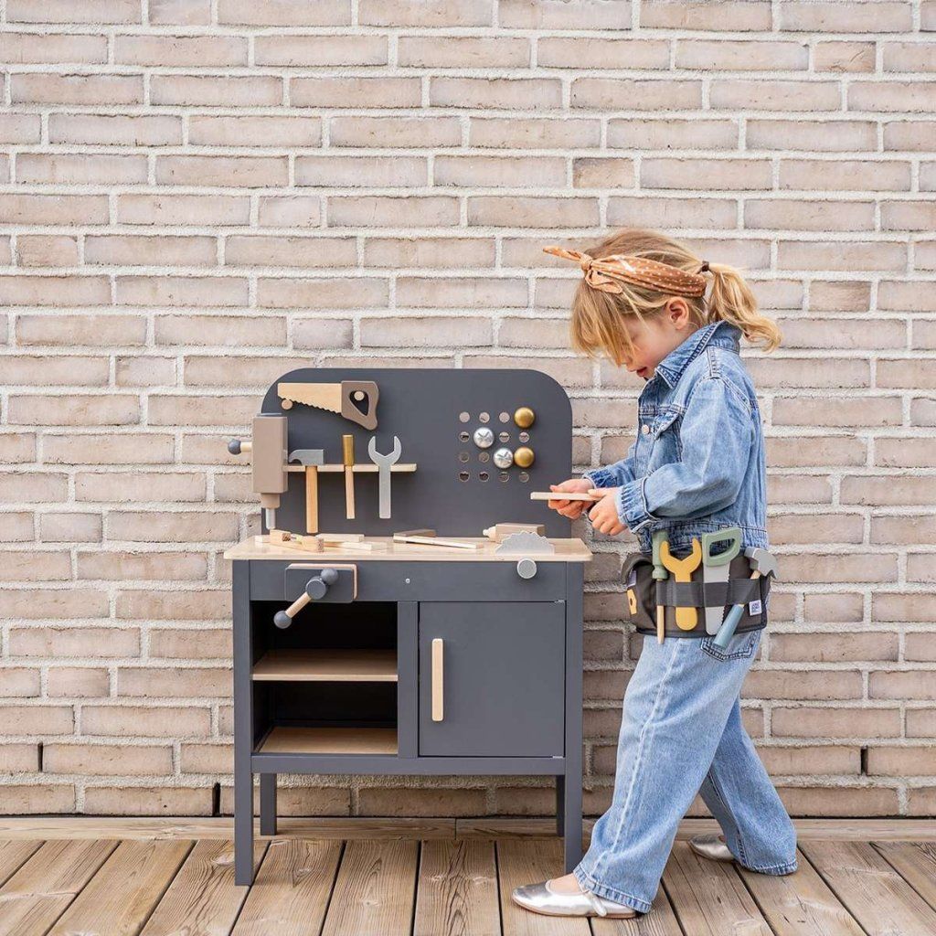 Dětský pracovní ponk je ideální hračka pro malé kutily, kteří rádi napodobují dospělé při práci. Nabízí spoustu možností ke kreativní hře a umožňuje dětem vyzkoušet si základní kutilské činnosti bezpečnou a zábavnou formou. Díky bohatému příslušenství a stabilní konstrukci se stane oblíbeným místem pro každodenní hraní.