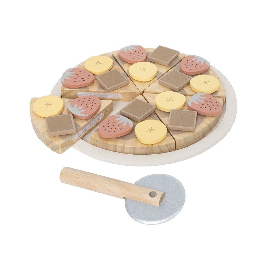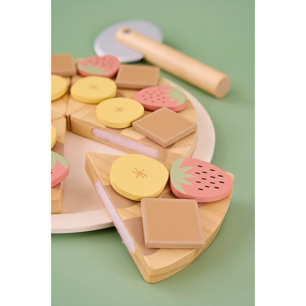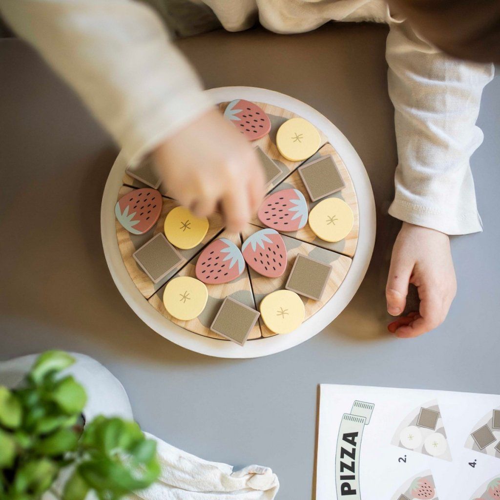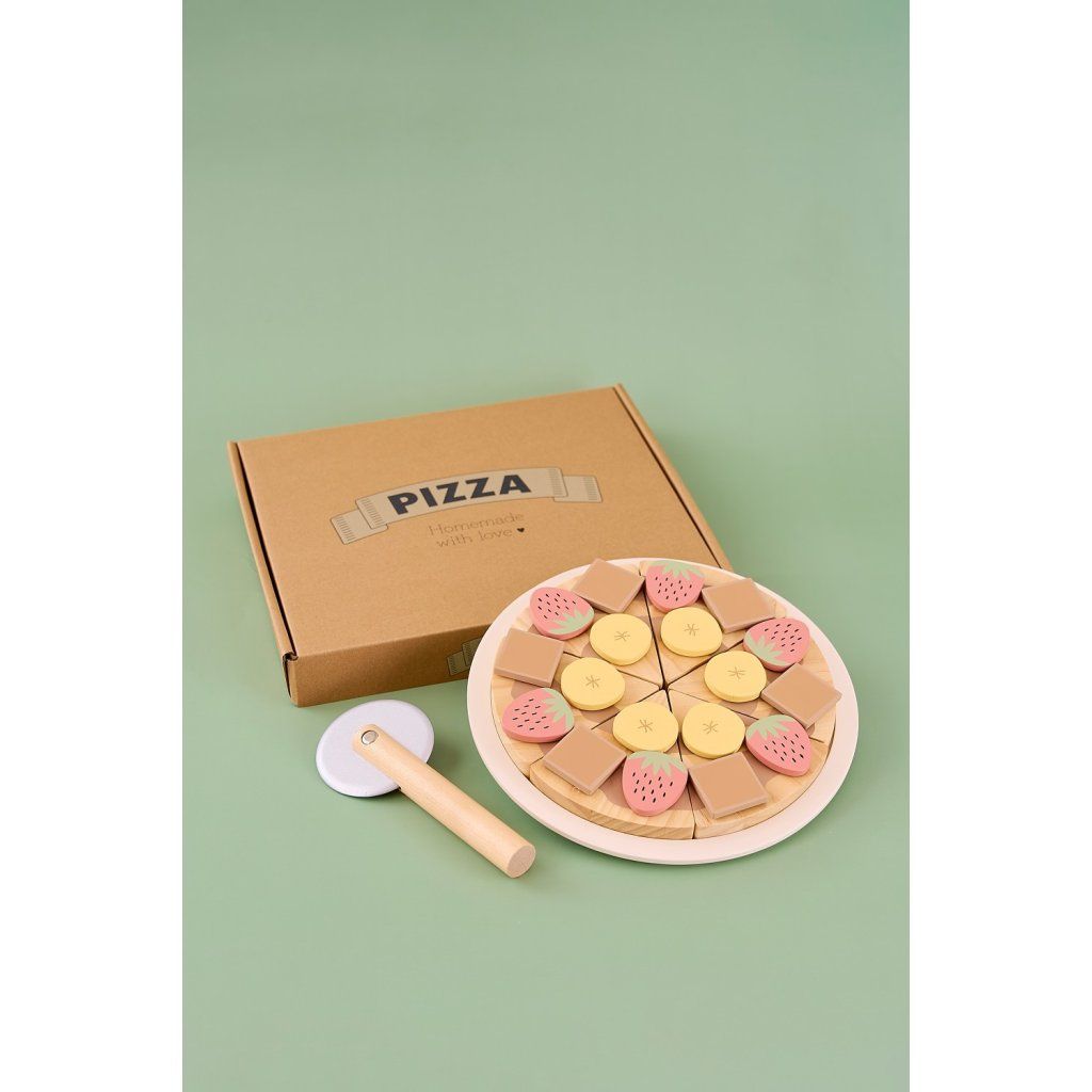 Dřevěná dezertní pizza potěší všechny malé cukráře, kteří rádi tvoří vlastní sladké dobroty. Děti si mohou pizzu krájet, znovu skládat a zdobit podle vlastní fantazie nebo podle přiložené karty s recepty. Tato zábavná hračka podporuje kreativitu, představivost i jemnou motoriku a nabízí nekonečné možnosti hraní.
