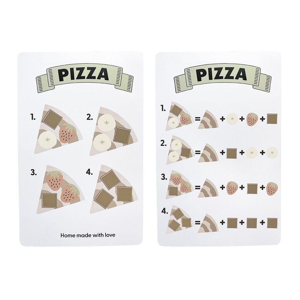 - obsah balení: pizza (6 dílků), 4× jahoda, 4× banán, 4× čokoládový kousek, kráječ na pizzu, karta s recepty