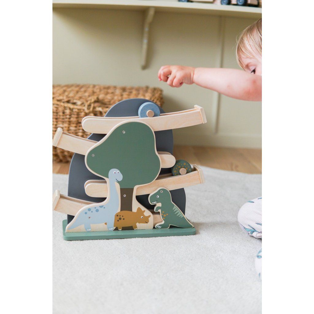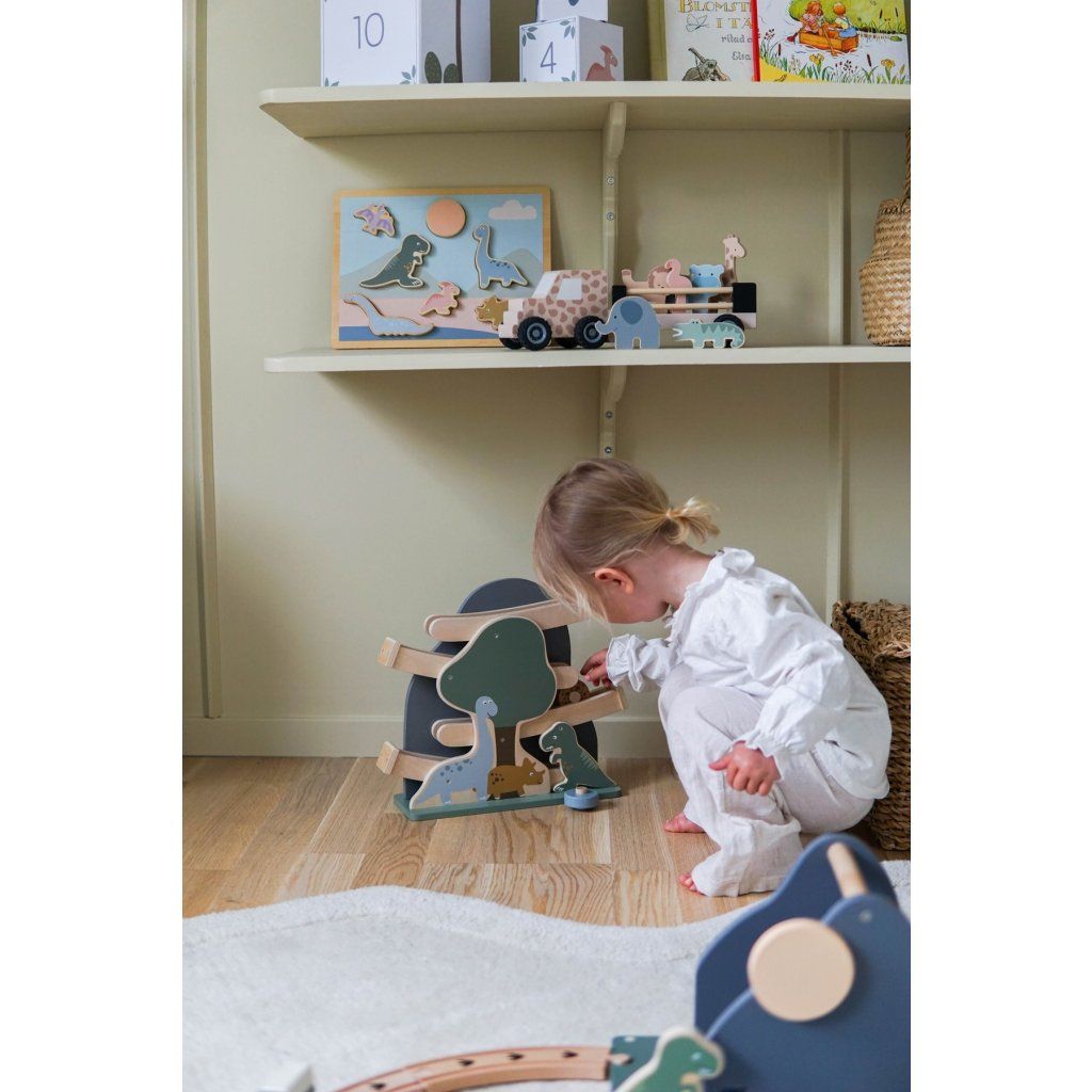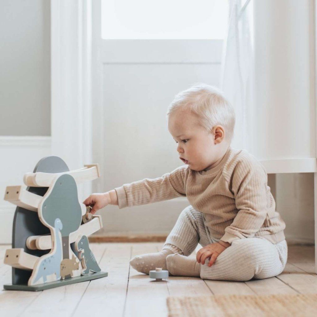 Zábavná dřevěná dráha s dinosauřím motivem nadchne každého malého objevitele. Barevná vajíčka se kutálejí po klikaté trase a vytvářejí poutavý pohyb, který děti zabaví na dlouhou dobu. Hračka přirozeně rozvíjí motoriku, koordinaci i pozorovací schopnosti a představuje originální alternativu ke klasickým autodráhám.