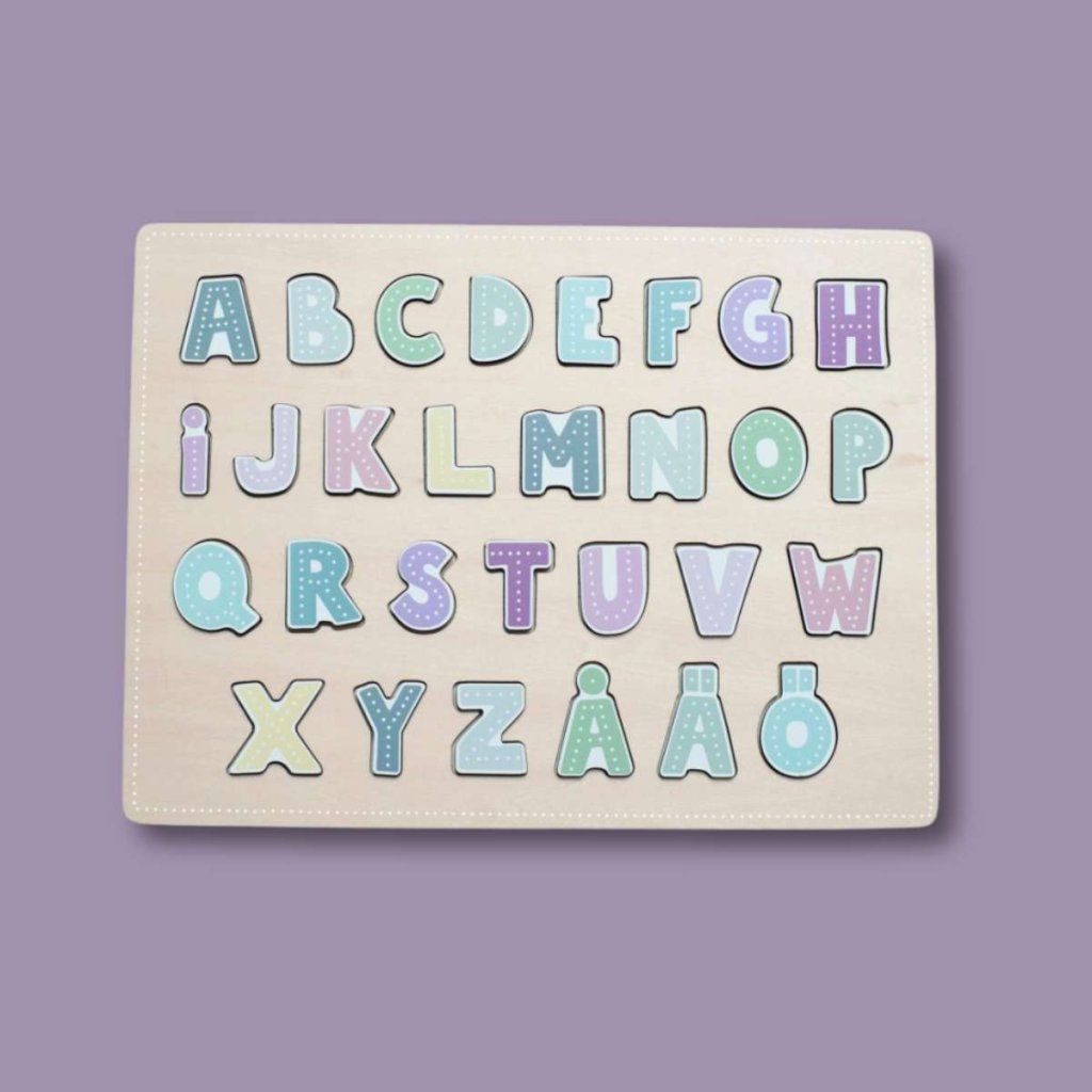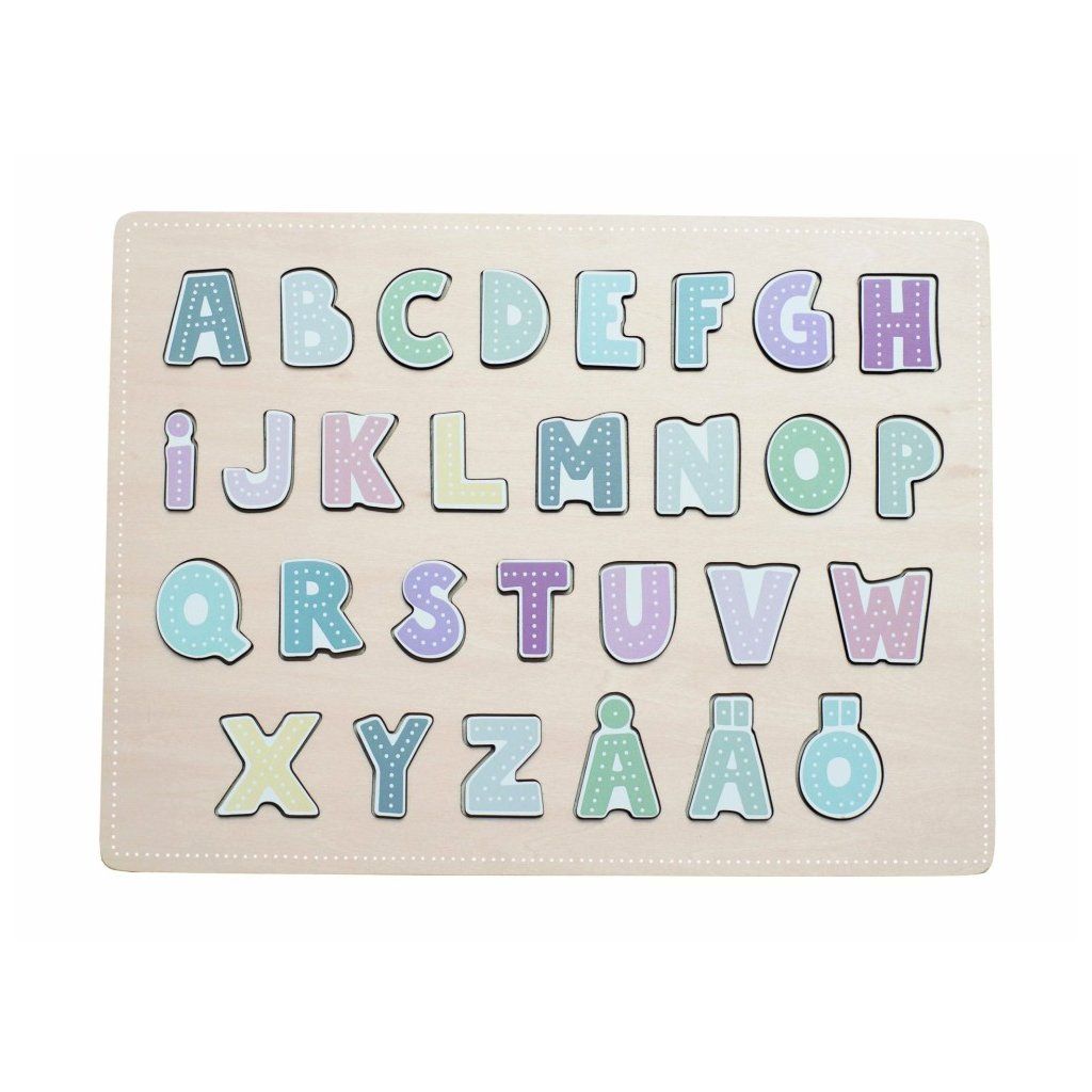 Dřevěná abecední skládanka v jemných pastelových barvách, která dětem zábavnou formou pomáhá poznávat jednotlivá písmena. Každý dílek představuje jedno písmeno abecedy a podporuje tak přirozené učení hrou. Puzzle je ideální pro první seznámení s abecedou i rozvoj jemné motoriky.