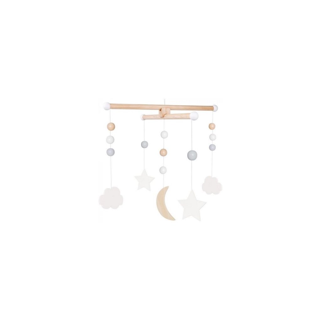 Roztomilý dřevěný kolotoč je ideálním řešením pro zábavu vašeho děťátka v postýlce a také k jeho uklidnění před zaslouženým odpočinkem. Pomáhá stimulovat smysly děťátka a jeho pohyby během prvních měsíců.