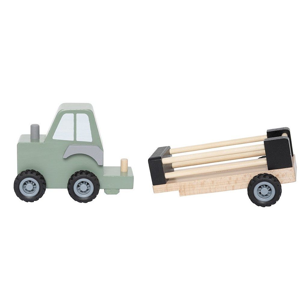 Dřevěný farmářský traktor s odpojitelným přívěsem, který přináší dětem spoustu možností pro kreativní a tematickou hru na farmu. Děti mohou nakládat zvířátka, převážet je po farmě a vytvářet si vlastní příběhy. Robustní konstrukce a jednoduché tvary jsou ideální pro malé dětské ruce.