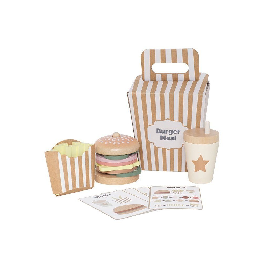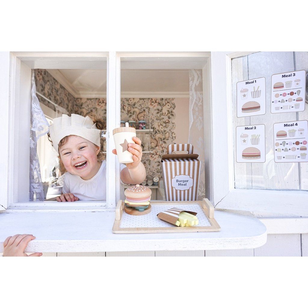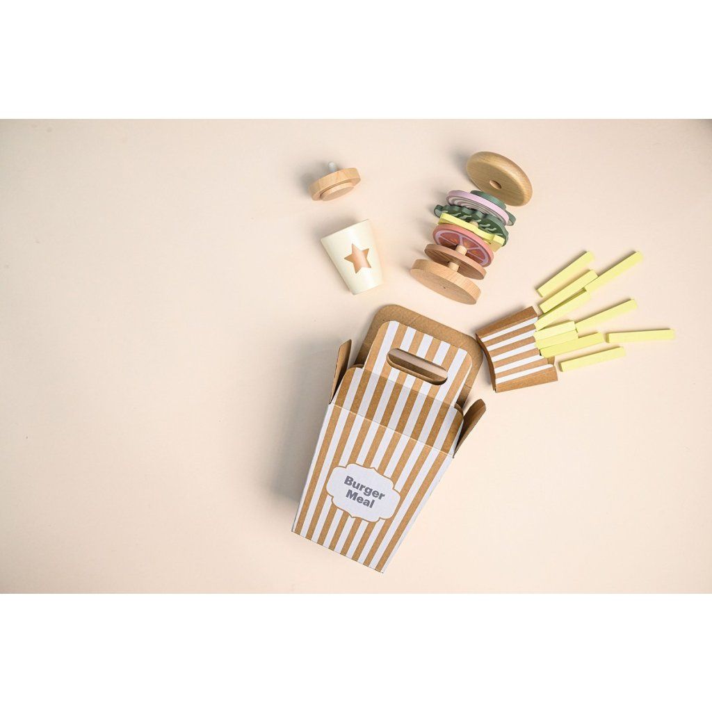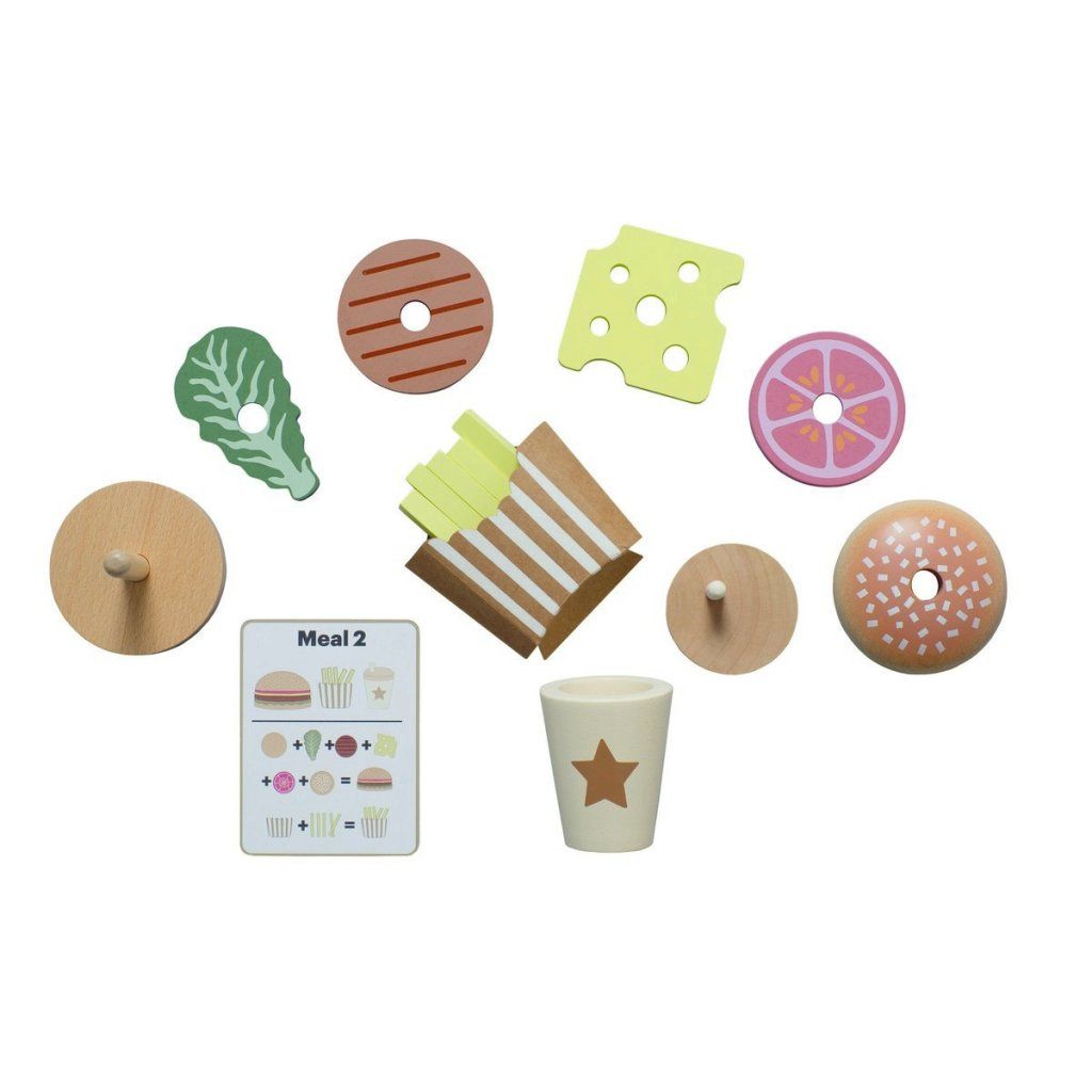 Připravte ty nejchutnější „burgery“ podle vlastní fantazie! Tento hravý hamburgerový set umožní dětem skládat vlastní menu, kombinovat ingredience a objevovat radost z vaření i servírování. Každý burger může být jiný – přesně podle chuti malého kuchaře. Díky doplňkům a kartám s inspirací si děti užijí nejen kreativní hru, ale i zábavné napodobování skutečného stravování.