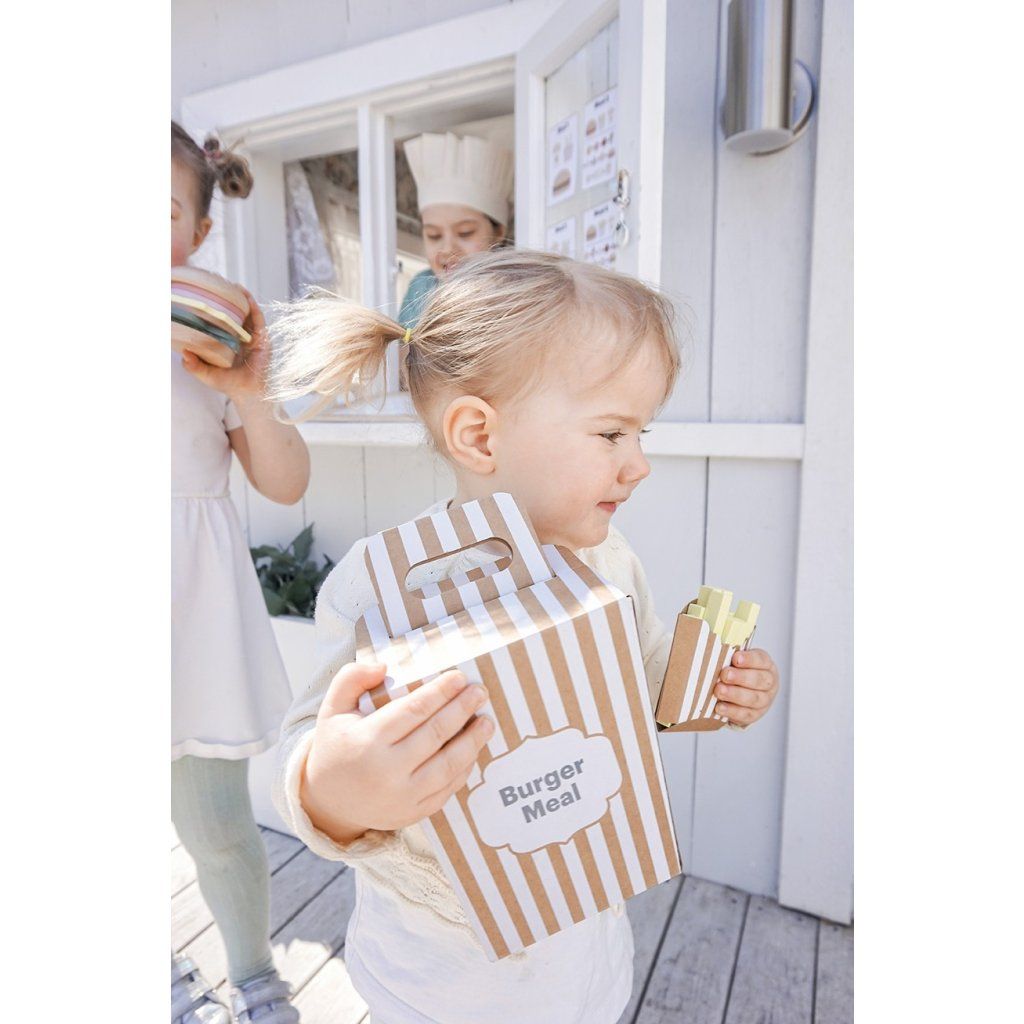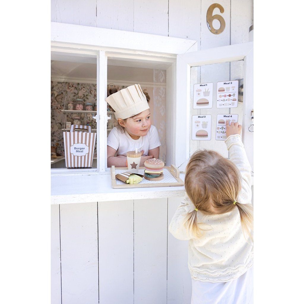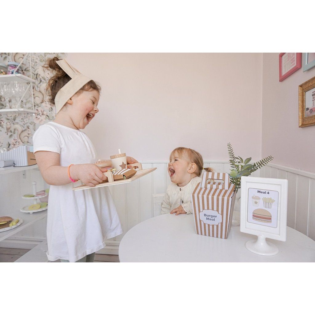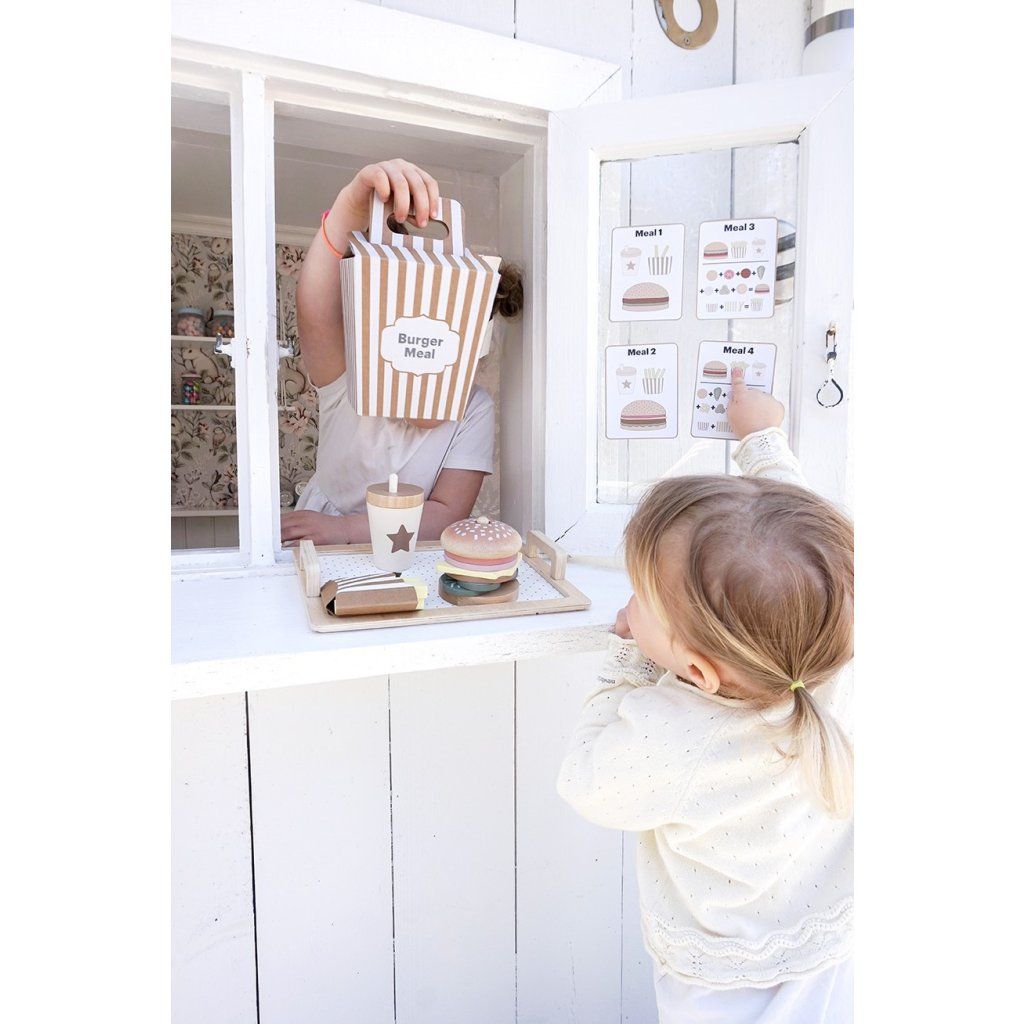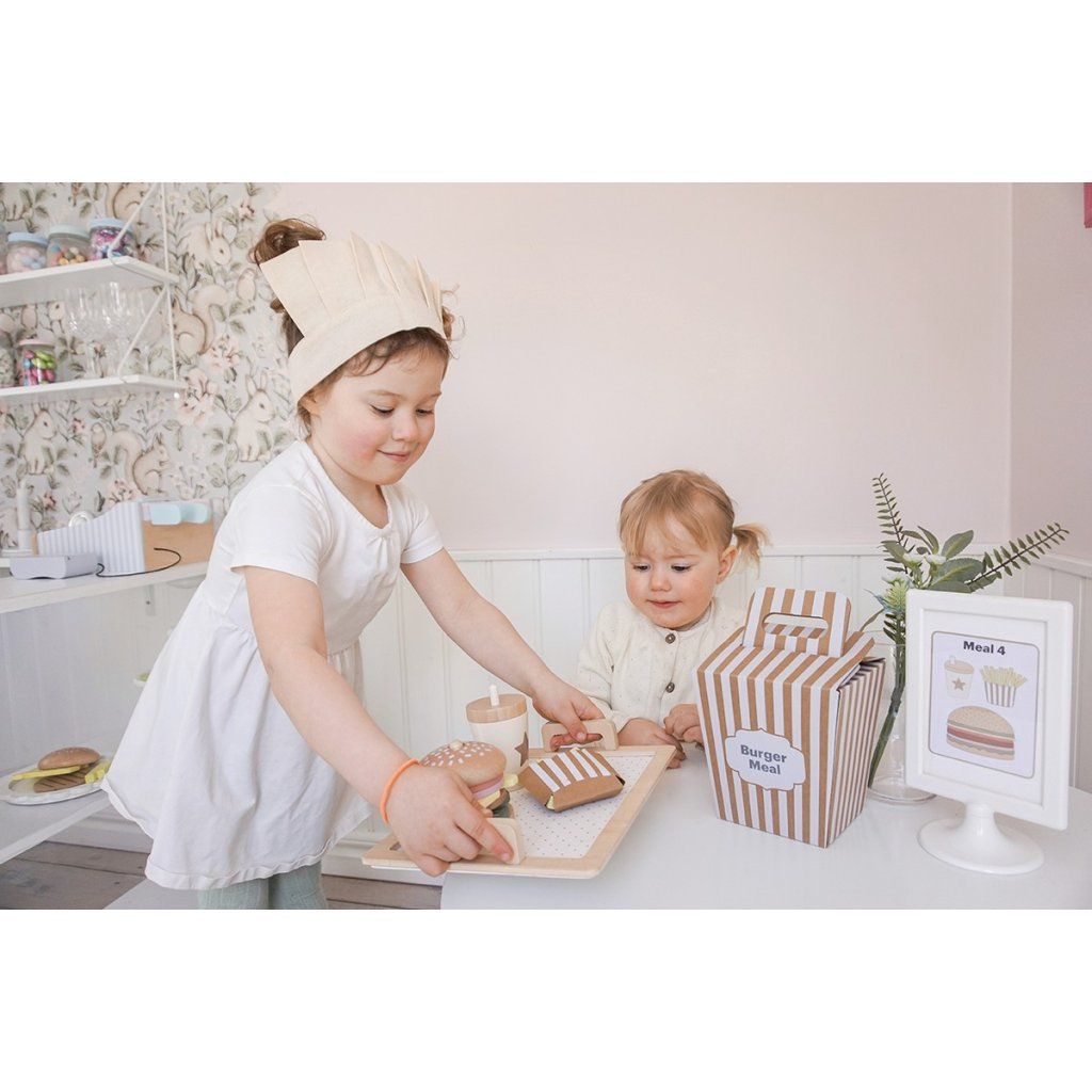 Připravte ty nejchutnější „burgery“ podle vlastní fantazie! Tento hravý hamburgerový set umožní dětem skládat vlastní menu, kombinovat ingredience a objevovat radost z vaření i servírování. Každý burger může být jiný – přesně podle chuti malého kuchaře. Díky doplňkům a kartám s inspirací si děti užijí nejen kreativní hru, ale i zábavné napodobování skutečného stravování.