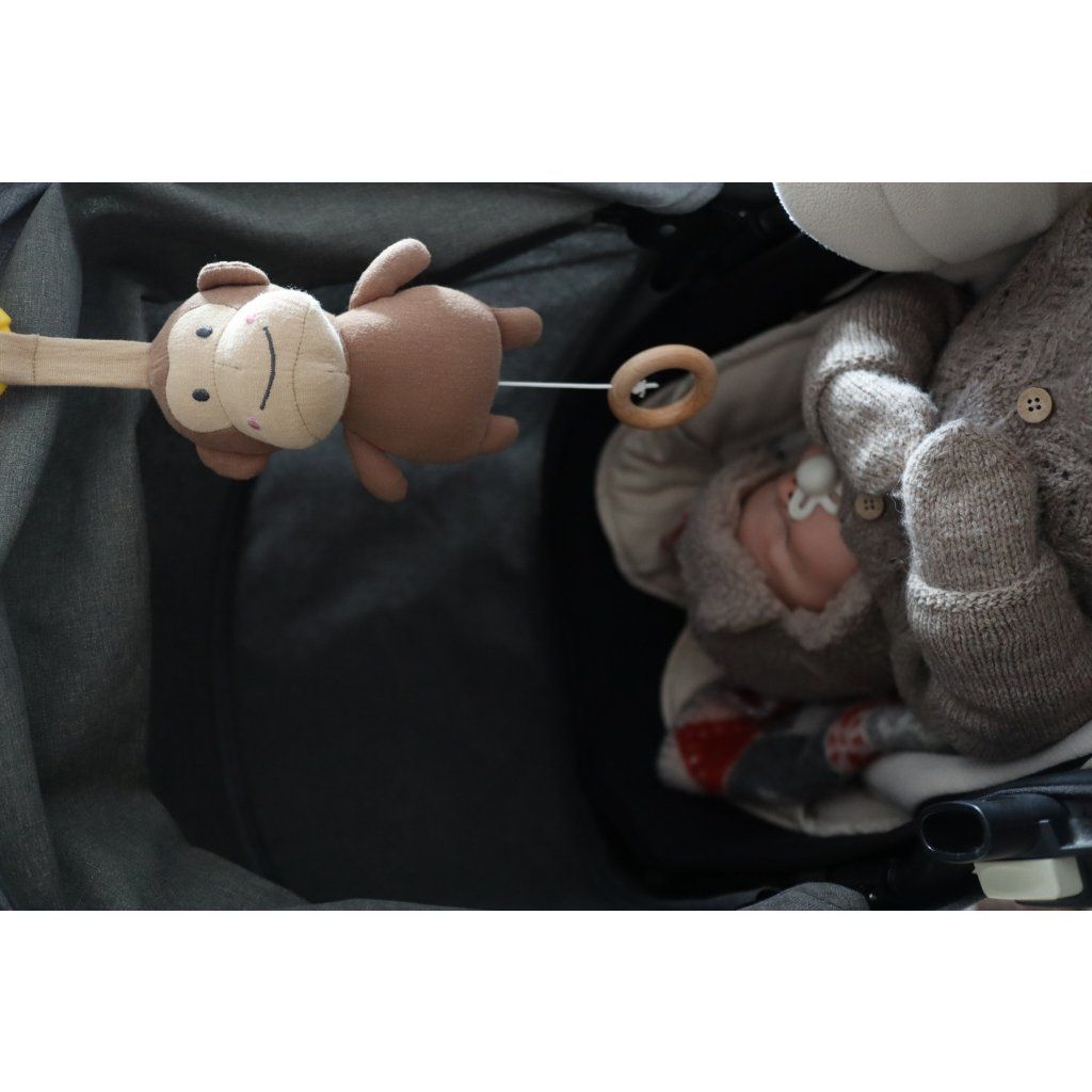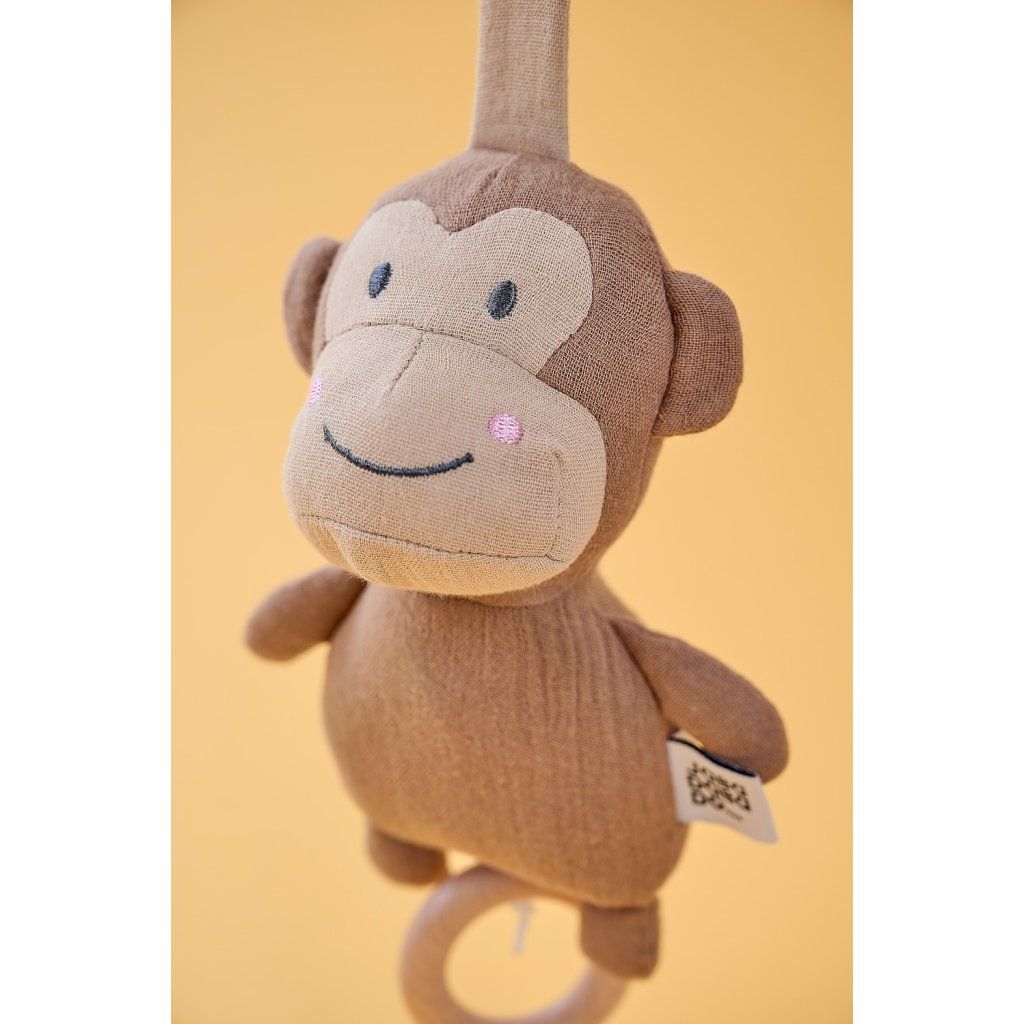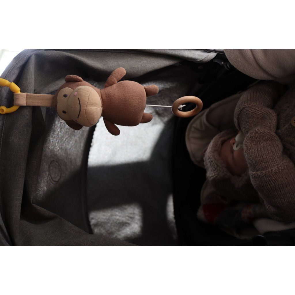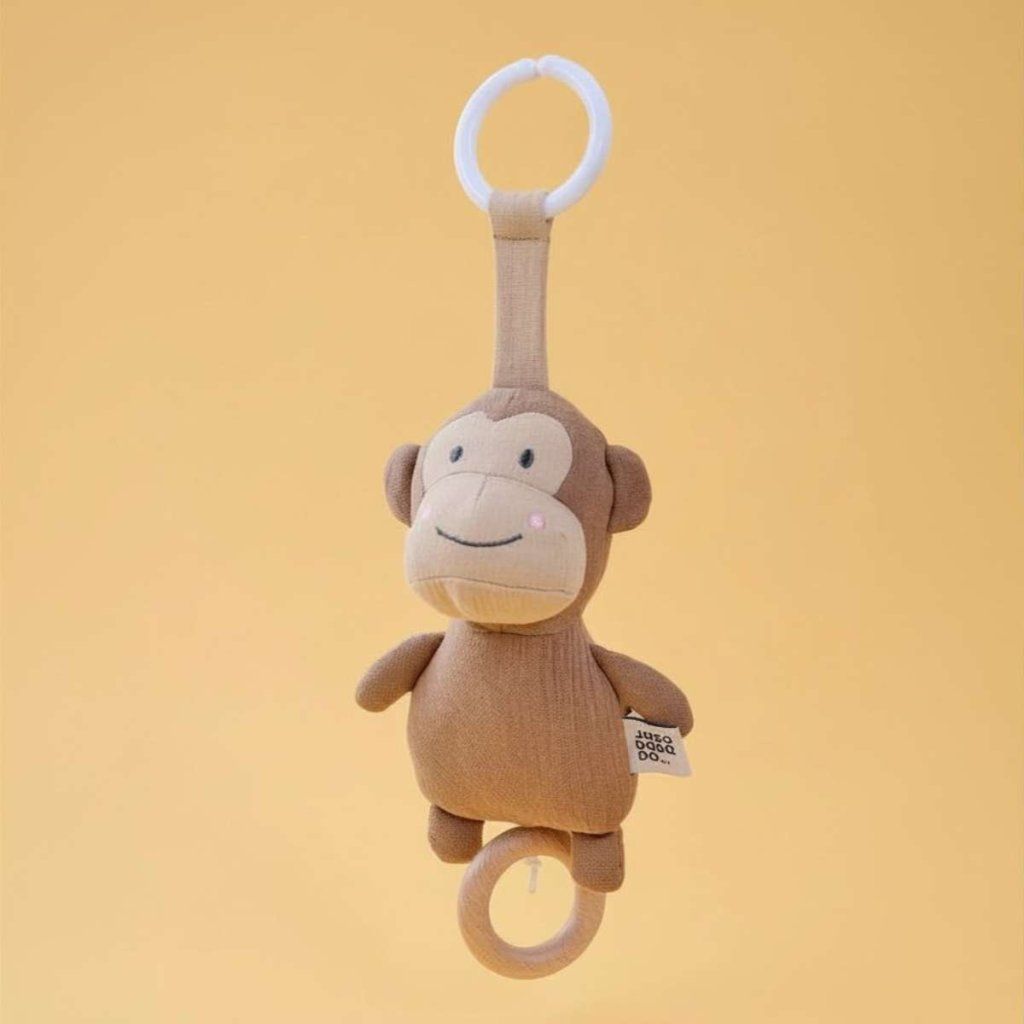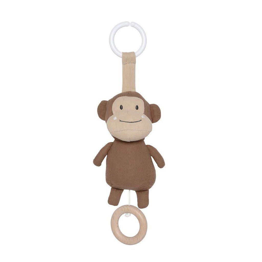 Roztomilá textilní hračka ve tvaru opičky s jemnou hudební funkcí, která přehrává uklidňující ukolébavku. Hudba se jednoduše spouští zatažením za dřevěný kroužek, takže je její ovládání snadné a intuitivní. Měkké provedení a hravý design z ní dělají ideálního společníka pro miminka doma i na cestách.