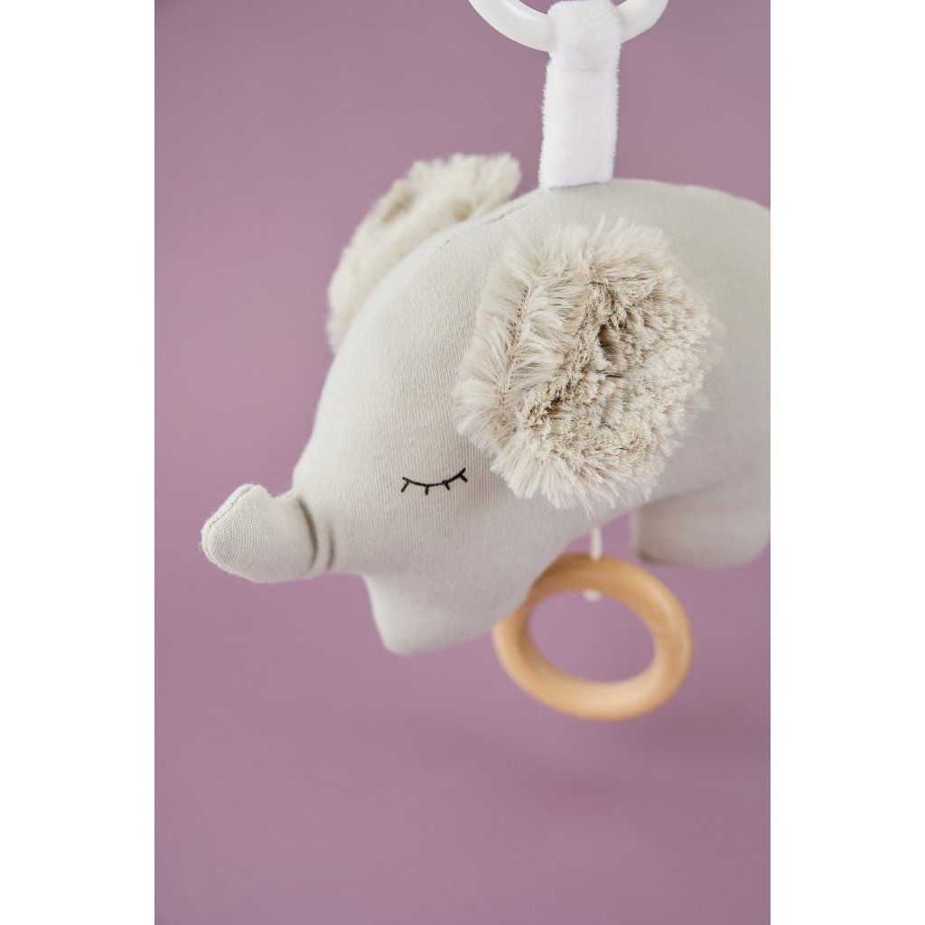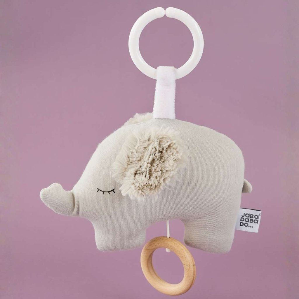 Roztomilá textilní hračka ve tvaru slona s jemnou hudební funkcí, která přehrává uklidňující ukolébavku. Hudba se aktivuje jednoduchým zatažením za dřevěný kroužek, takže je ovládání snadné i pro rodiče při každodenním používání. Měkké provedení a přívětivý design z ní dělají ideálního společníka pro miminka doma i na cestách.