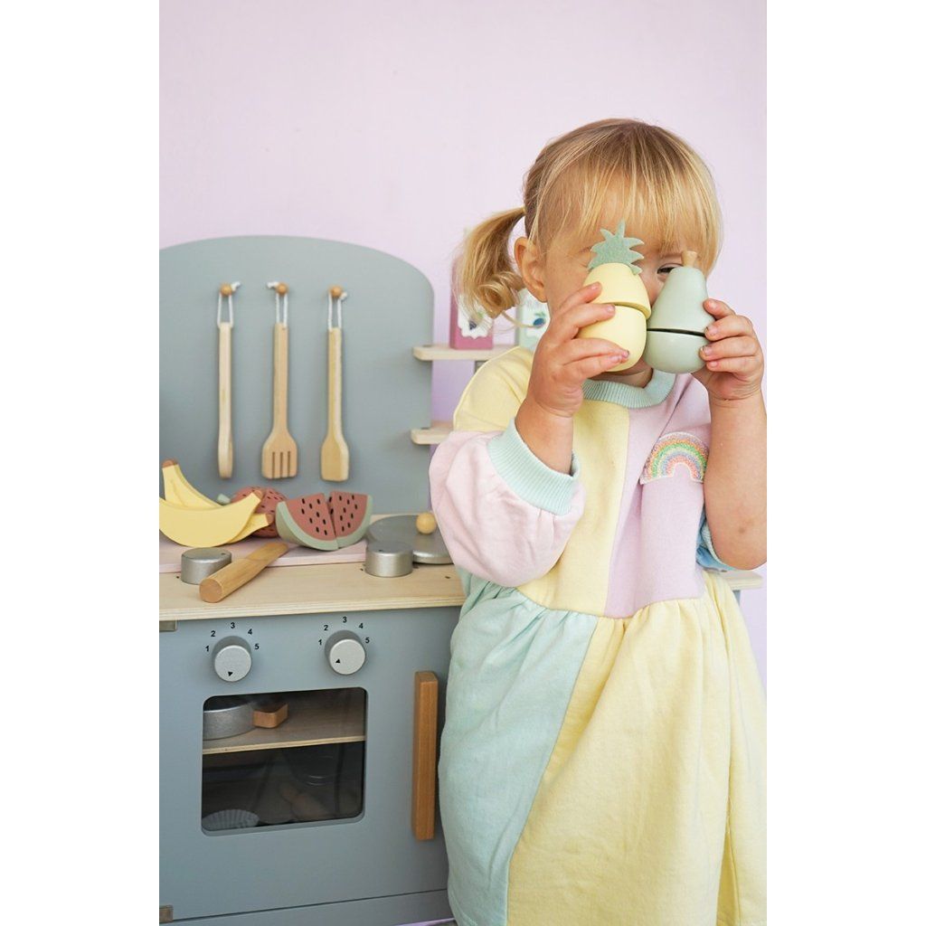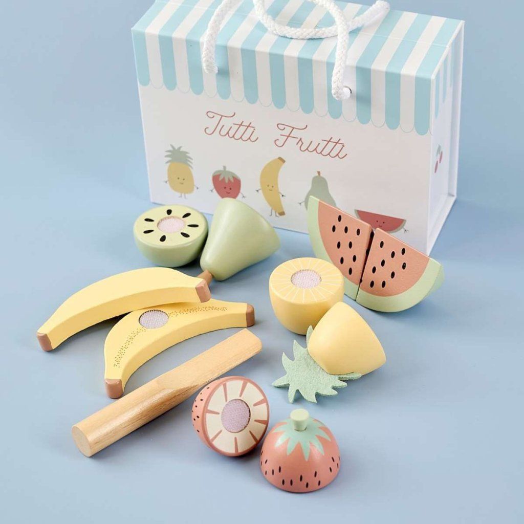 Připravte si vlastní ovocný salát plný barev a zábavy! Tento hravý set dřevěného ovoce umožní dětem krájet, kombinovat a objevovat svět potravin bezpečnou a kreativní formou. Díky spojům na suchý zip si děti užijí realistický pocit krájení, který podporuje jejich zručnost i fantazii. Ideální doplněk do dětské kuchyňky, který promění každou hru v malou kulinářskou show.