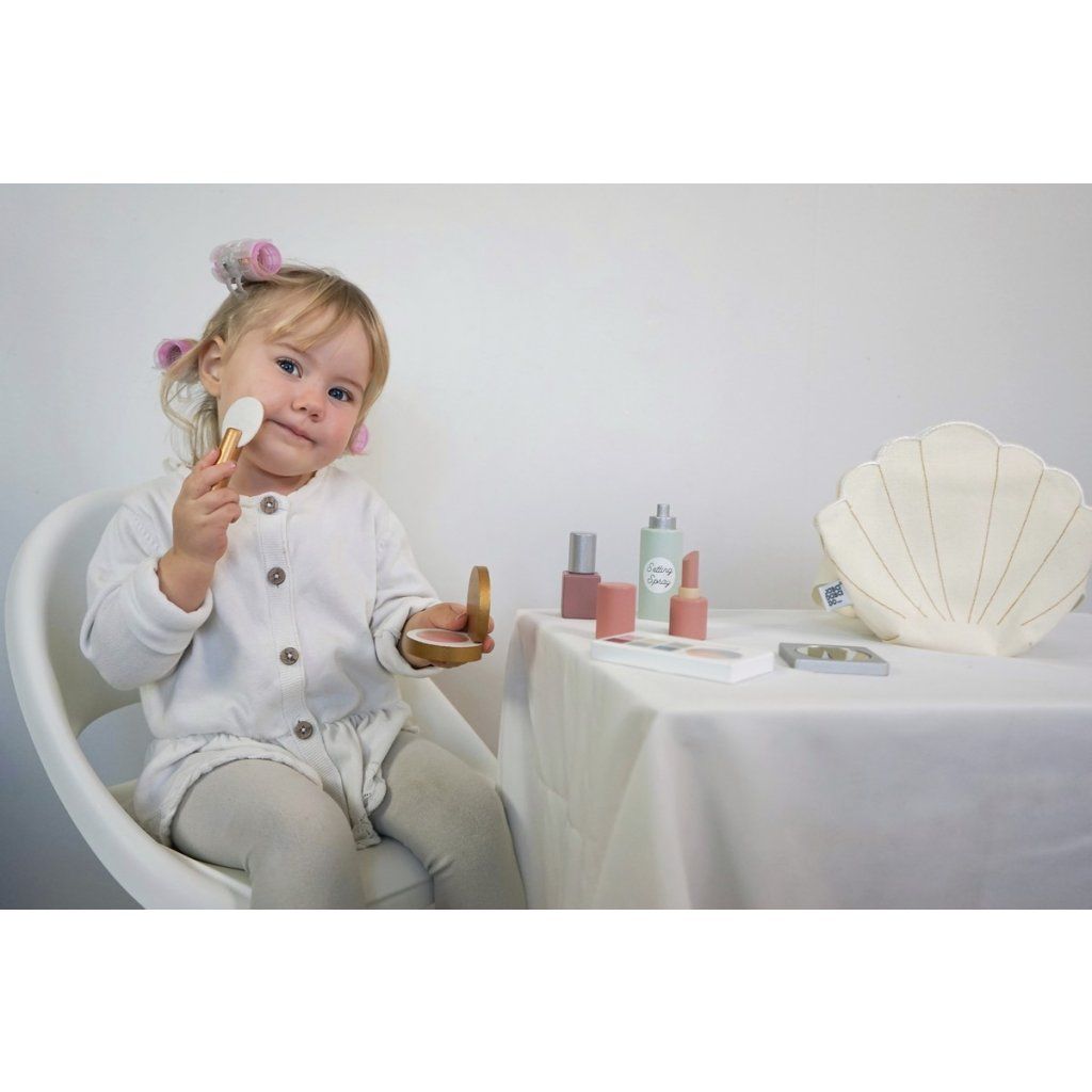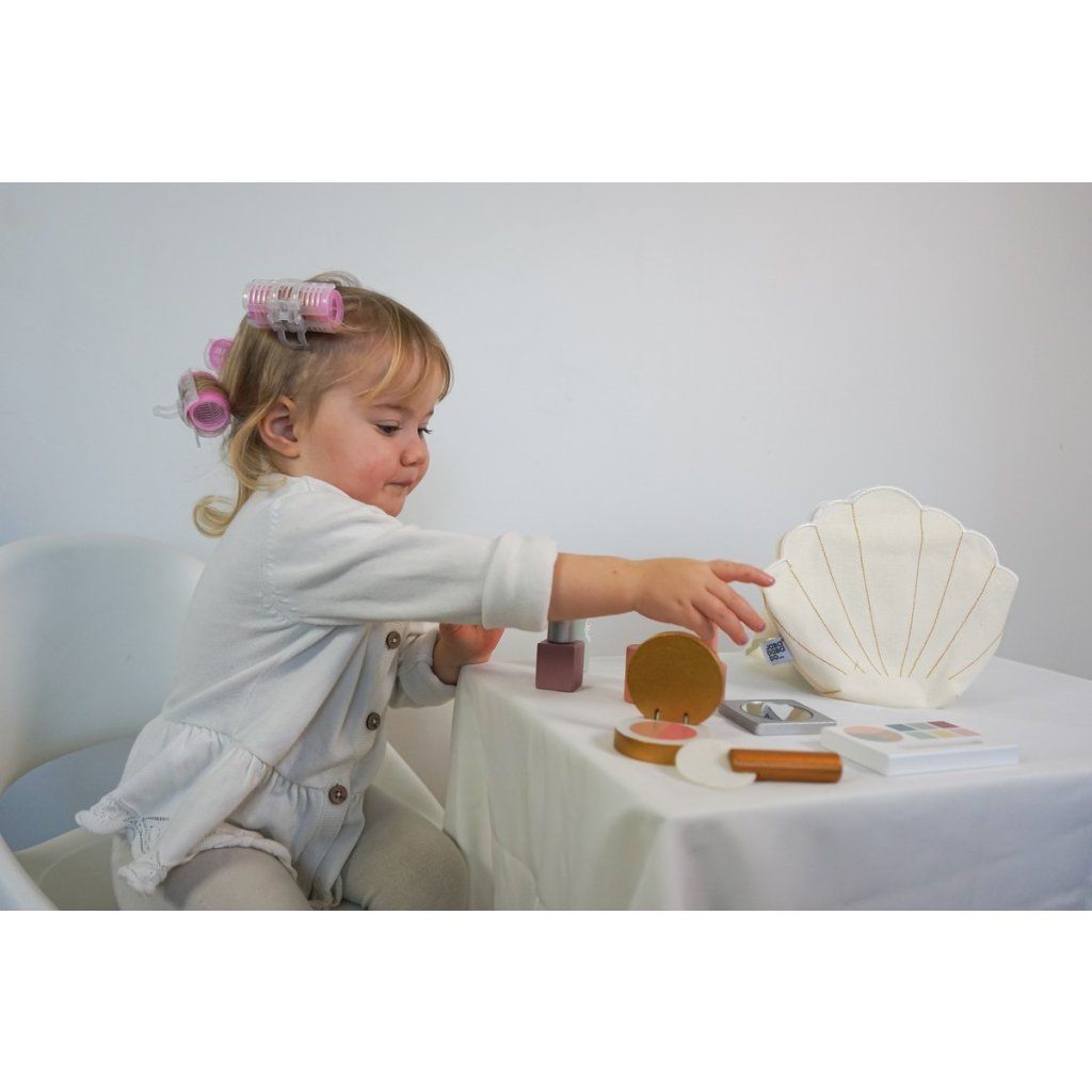 Zábavný make-up set v podobě roztomilého pásu ve tvaru mušle umožní dětem vyzkoušet si roli malé vizážistky. Díky praktickému provedení mají všechny doplňky vždy po ruce a mohou si hrát kdekoliv – doma i na cestách. Hra podporuje fantazii, kreativitu a jemnou motoriku. Set je navržen tak, aby byl snadno použitelný a zároveň bezpečný pro dětskou hru.