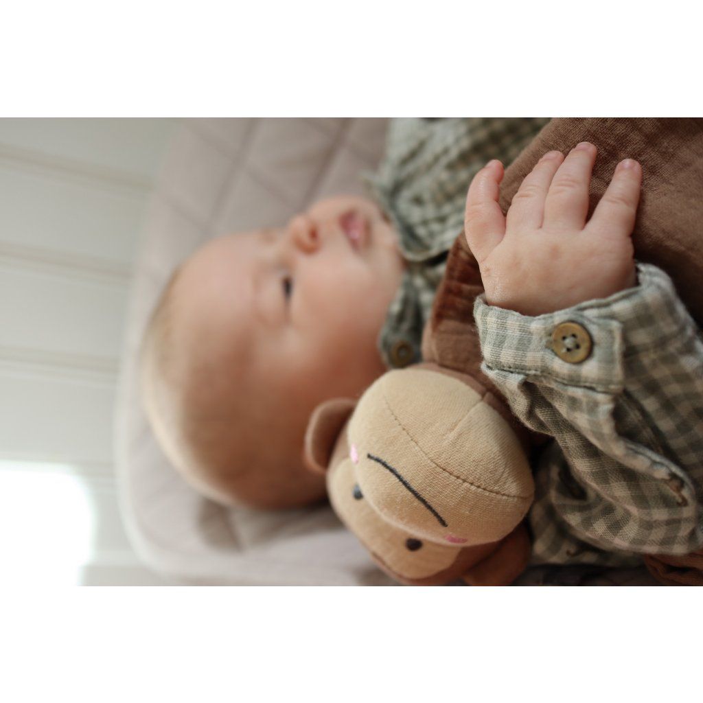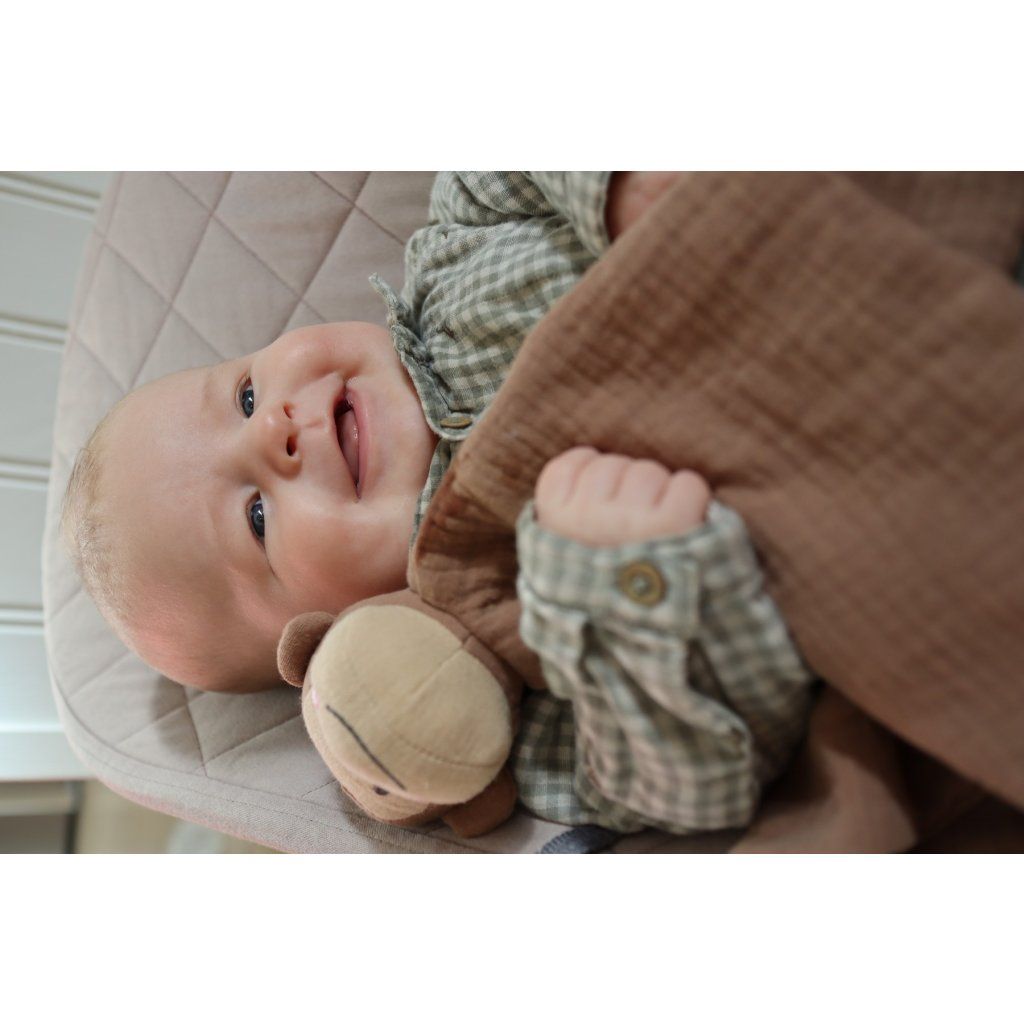Roztomilý a hebký muchláček je ideálním společníkem pro nejmenší děti. Díky jemnému materiálu poskytuje pocit bezpečí a pohodlí při usínání, odpočinku i během dne. Skvěle se hodí doma, v kočárku i na cestách. Pomáhá miminkům uklidnit se a vytváří příjemné prostředí pro spánek i hru.