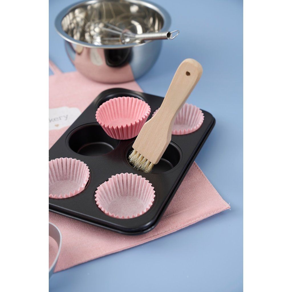 - Obsah balení: kufřík, chňapka, váleček, metlička, forma na cupcaky, mísa, míchací lžíce, štětec na těsto, kolečko na těsto, 3× vykrajovátka, 24× formičky na cupcaky