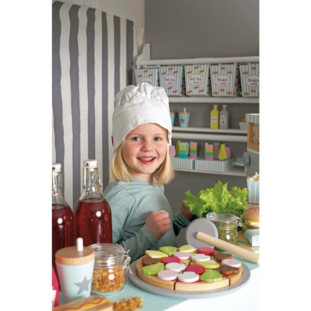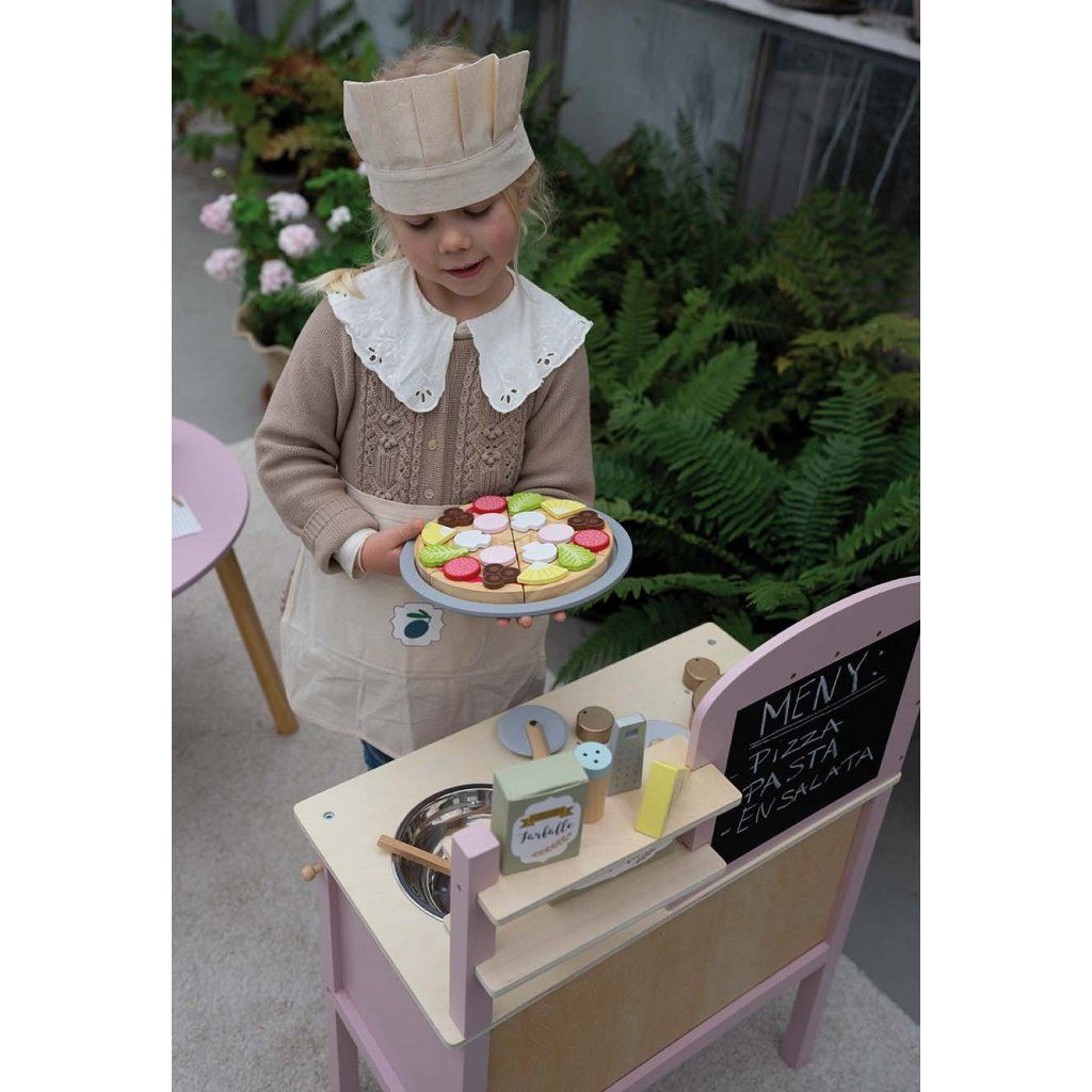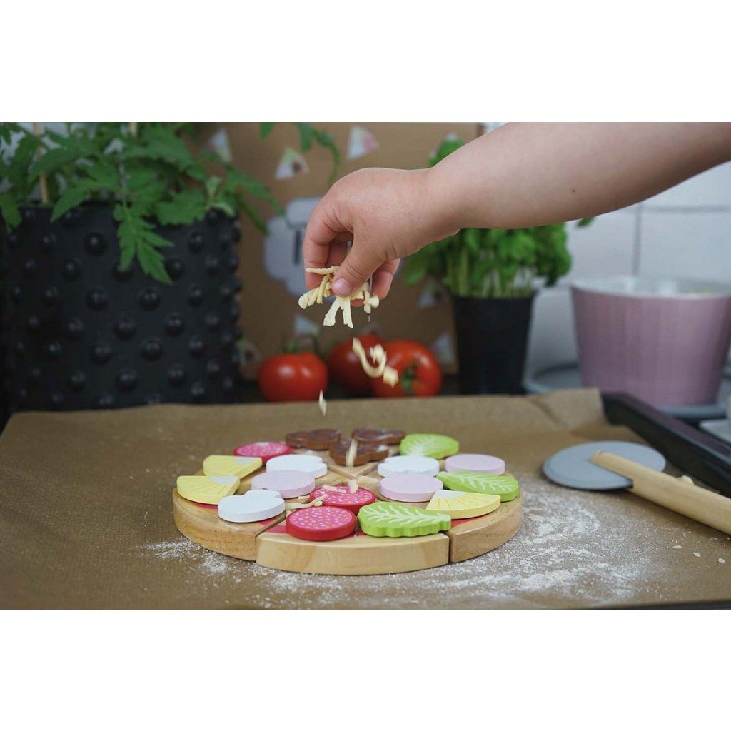 Víkend se blíží as ním i čas na domácí pizzu! Pozvěte na ni své přátele a úspěch je zaručen. Jako základ je samozřejmě rajčatová omáčka a sýr. A na vrch pizzy si pomocí suchých zipů přidáte, co máte rádi. 6 dílů pizzy také drží spolu pomocí suchých zipů a snadno se „nakrájí“. Pizza obsahuje: 3 žampiony, 3 kolečka salámu, 3 cibulové kroužky, 3 listy salátu, 3 kousky ananasu, 3 olivy, pizza talíř a kráječ na pizzu. Samozřejmě se nachází v krabici na pizzu.