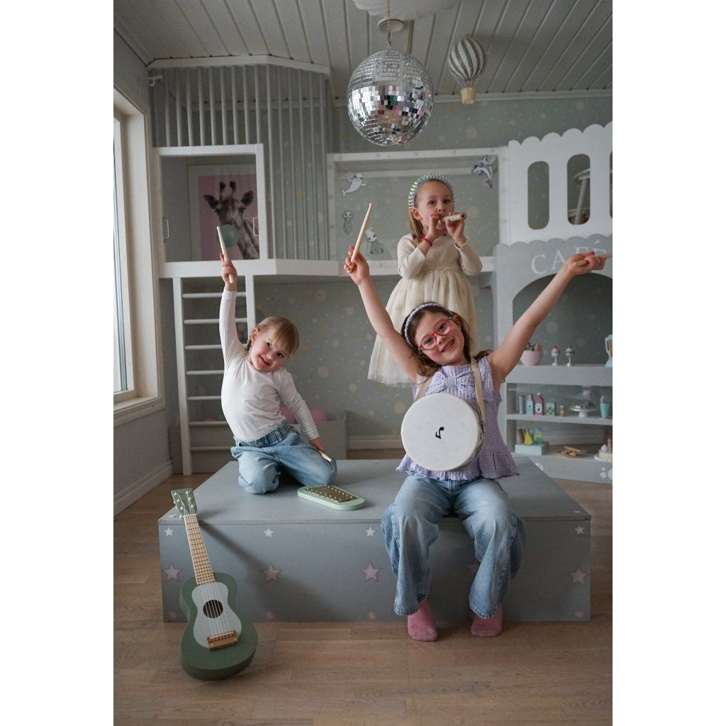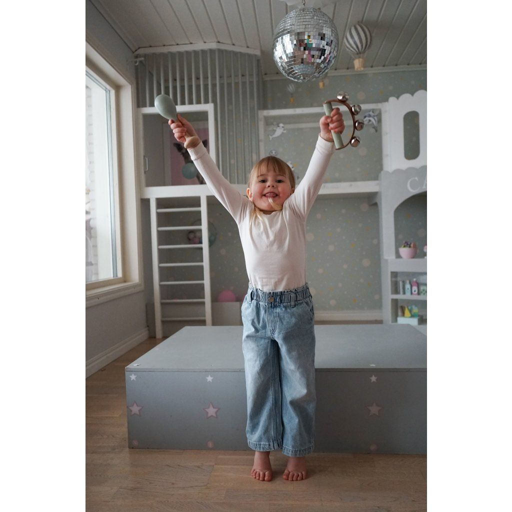 Jednoduchý a zábavný hudební nástroj, který je ideální pro první seznamování dětí s rytmem a zvuky. Při zatřesení vydává příjemný zvuk, který děti motivuje k objevování hudby a vlastnímu tvoření. Díky ergonomickému tvaru se rolničky snadno drží i v malých dětských rukou.