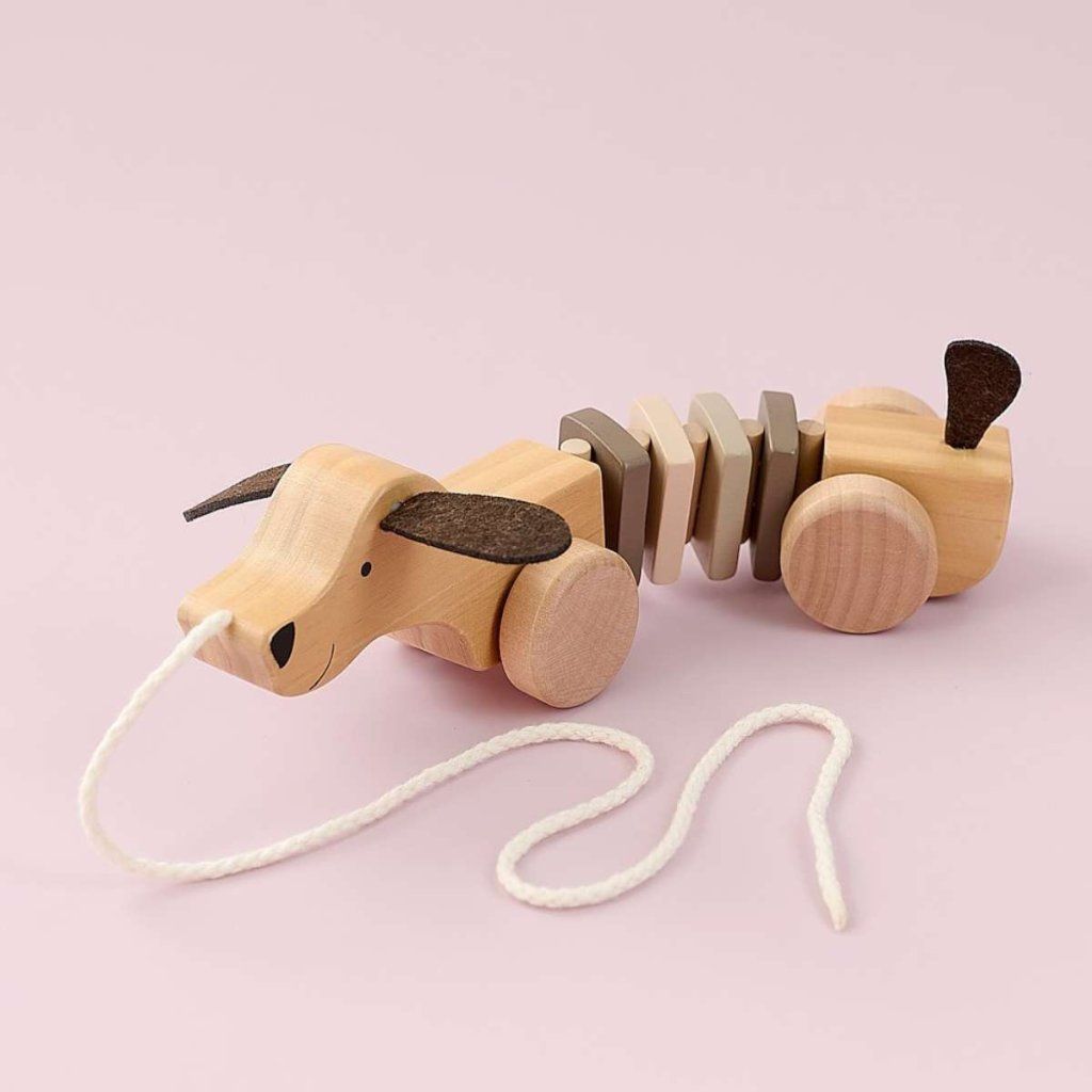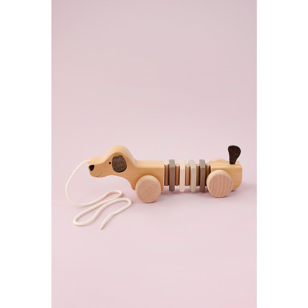 - Dřevěná tahací hračka ve tvaru pejska