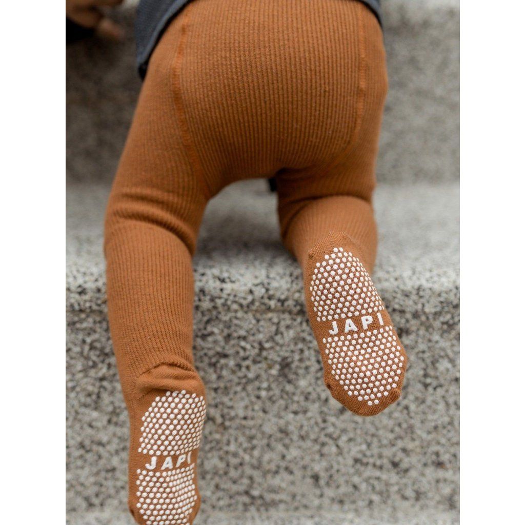 JAPI Punčochy s kšandami protiskluzové ORGANIC hnědé
