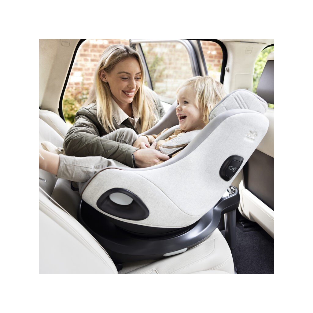 - úžasně snadné otáčení pomocí technologie Simple Swivel™ s perfektně dostupným tlačítkem pro odjištění otočení, které zvládnete jen jednou rukou a snadno pak usadíte, nebo vyjmete dítě ze sedačky