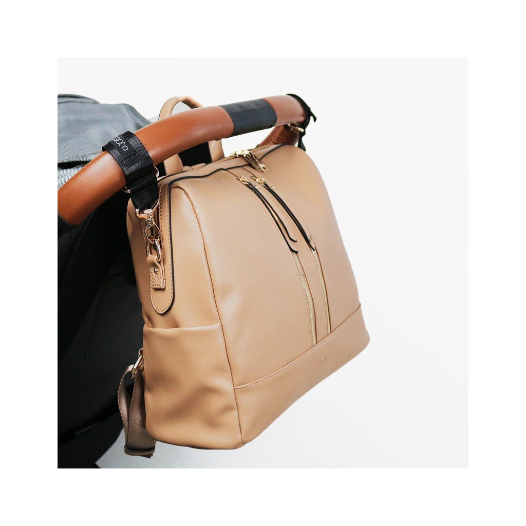 Pokud se nemůžete rozhodnout mezi přebalovací taškou a batohem, tak tohle je skvělá volba! Tuto kabelku si maminky zamilují po prvním vyzkoušení. Vypadá stylově i v době, kdy maminka vyrazí do města sama, bez kočárku. Sedne i na menší typy cestovních kočárků (Cybex Mios, Bugaboo Bee, Babyzen Yoyo, Joolz, atp.). Součástí je dlouhý popruh na rameno a postranní úchyty na suchý zip k připevnění na kočárek. Hmotnost tašky je 800g a doporučená nosnost je 3kg. Je to jedna z nejoblíbenějších kabelek nejen v zemi výrobce, ale i u nás! Kabelka s mnoha kapsami, kterou v okamžiku proměníte v batoh nebo připevníte na kočárek. Variabilitu ocení maminky, které mají rády volné ruce a při výletech s dětmi potřebují mít tašku na různých místech. Kabelka je dostatečně prostorná pro všechny potřebné věci pro dítě i maminku. Do otevřených postranních kapes se vejdou dětské lahvičky typu Pura. Na přední straně jsou dvě kapsy na zip na osobní věci, které potřebujete mít ihned po ruce. Na zadní straně je skrytá kapsa na zip. Uvnitř přebalovacího batohu je dalších 8 kapes a přihrádek v různých velikostech. Dvě z toho jsou na zip.