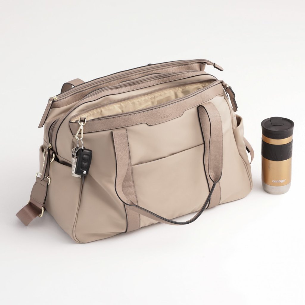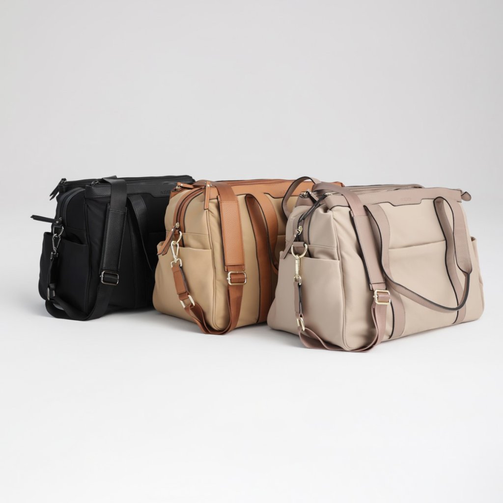Potřebujete se sbalit na pár dní mimo domov? Vyzkoušejte cestovní tašku Weekender - jsme si jistí, že si ji zamilujete jak pro její praktičnost, tak pro její design. Hlavní část tašky je rozdělena do dvou přihrádek, což je ideální pro každou maminku. Jednoduše oddělíte vaše potřeby a věci pro miminko. Uvnitř tašky najdete celkem 16 kapes, které vám zaručí přehlednost a pořádek. V tašce najdete i kapsu vhodnou pro notebook a háček s karabinkou, pro uchycení klíčů či hraček. Taška Weekender je vyrobena z voděodolného a snadno čistitelného nylonu s detaily v eko kůži. Vnitřní podšívka je také voděodolná, vyrobena z vysoce kvalitního materiálu, barevně ladící se zbytkem tašky. Weekender je větší praktická taška na cesty, do porodnice, na cvičení, zkrátka všude tam, kde se potřebujete sbalit na pár dní. Cestovní taška Weekender, jak už název napovídá, je ideální na víkendový pobyt mimo domov. Velikostně je taška vhodná i jako příruční zavazadlo do letadla. Zadní strana tašky je přizpůsobena pro vysouvací držátka kufru, na která tašku jednoduše nasadíte. Výhoda tašky, oproti jiným cestovním taškám, je její vnitřní členění a organizace. Součástí tašky je pohodlný popruh, který se dá nastavit podle toho, jak ho potřebujete mít dlouhý.
